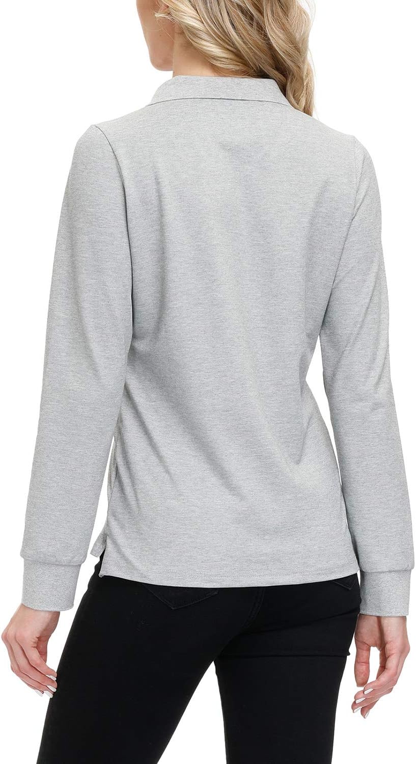 Sport polo shirts for women with long sleeve,solid color,fashion welt collar, classic v neck with zipper closure.Tag-free neck label with unique logo design on chest. Fabric