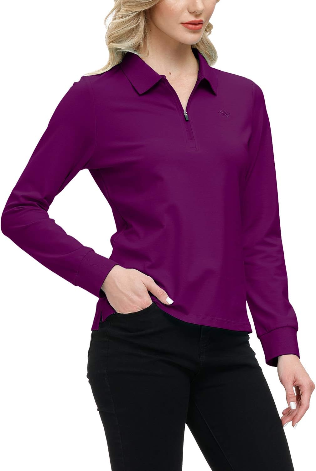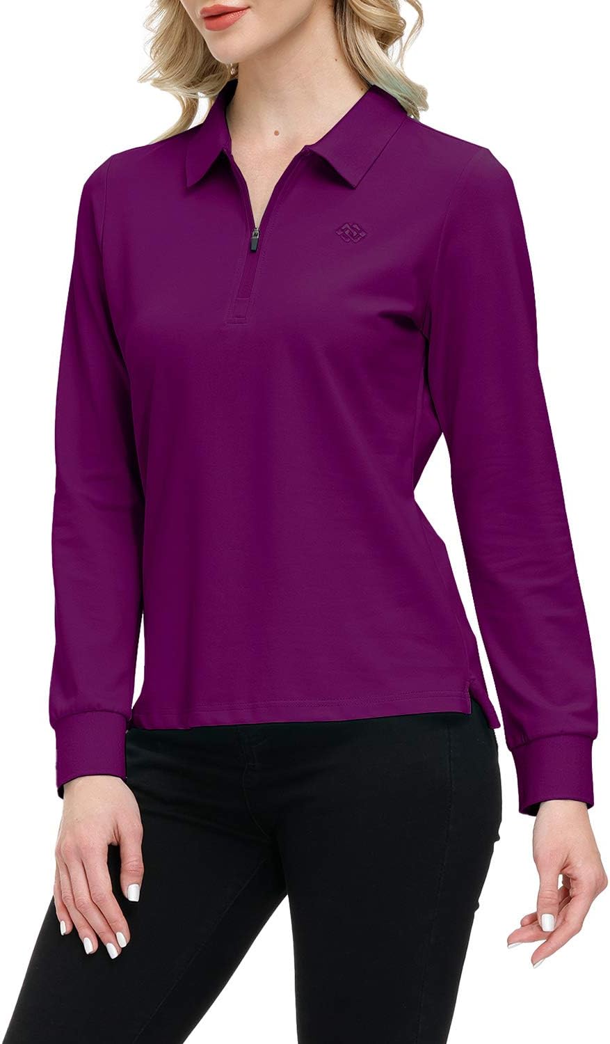 JINSHI Women’s Golf Polo Shirt Long Sleeves Zip Up Sport Active Shirts Quick Dry Athletic T-Shirt Casual Tennis Tops Slim Fit