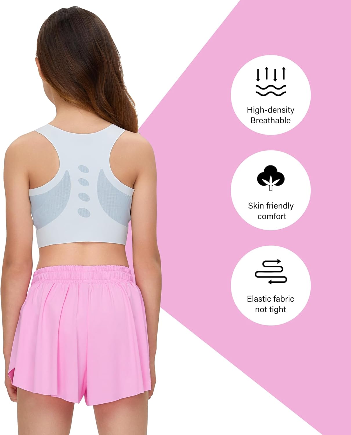 Kids Girls Athletic Flowy Shorts for Running Sports Fitness Active Workout Youth Butterfly Elastic Waist Skirts Shorts