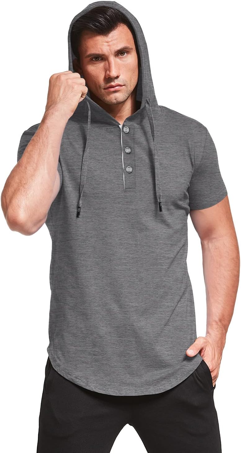 KUYIGO Men’s Casual Hooded T-Shirts Fashion Short Sleeve Solid Color Pullover Top Summer Blouse