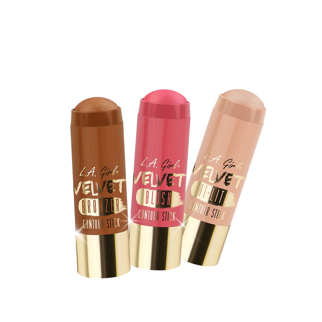 Contouring made easy with the Velvet Contour Stick Collection. This luxurious formula is paraben free with added jojoba seed oil, shea butter, cocoa seed butter and grape seed oil. The soft powdery finish blends beautifully to create the perfect contour and sculpted look! Collection includes 3 highlighters, 10 blushes and 3 bronzers.