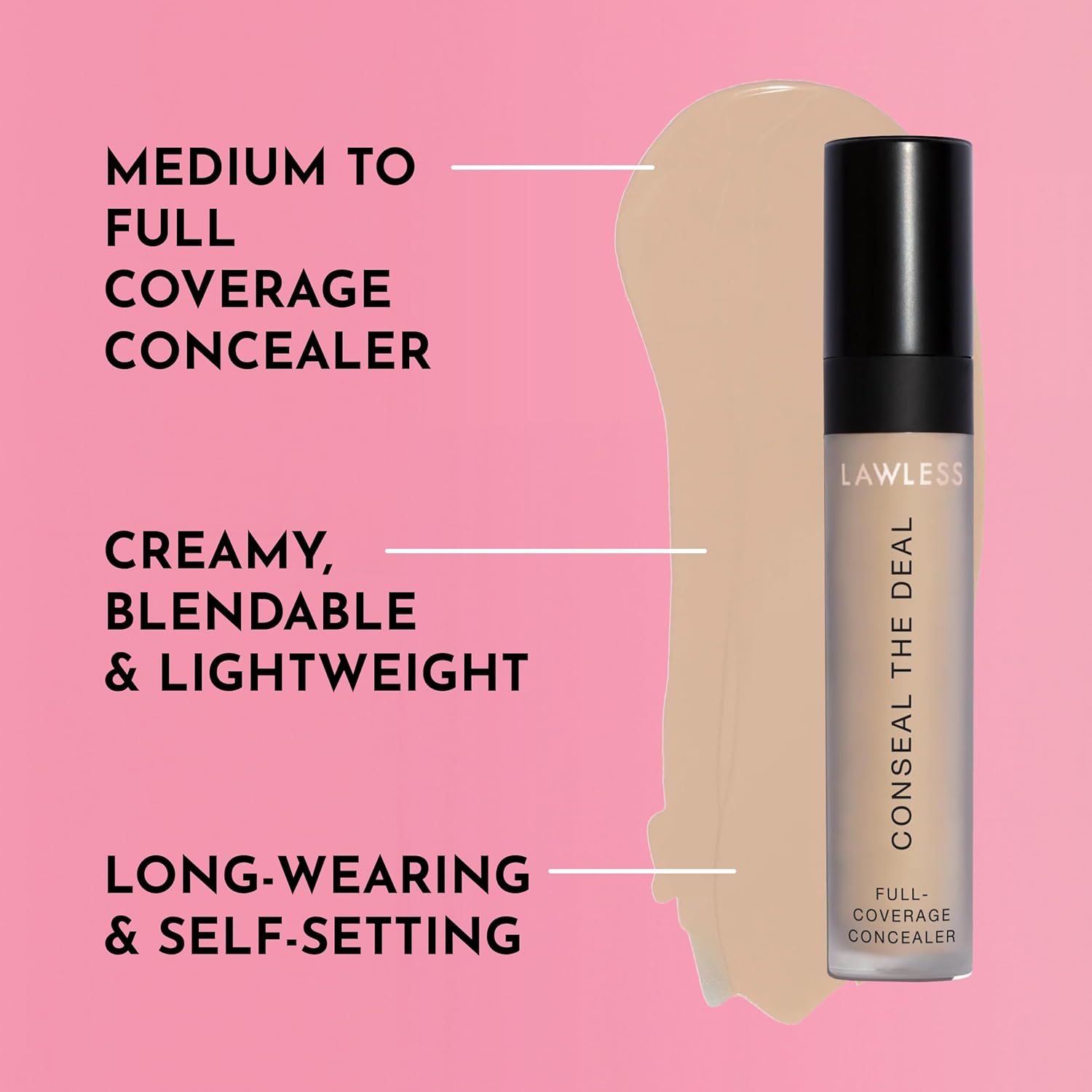 LAWLESS Conseal The Deal Lightweight Longwear Everyday Concealer – Linen – with Antioxidants and Caffeine to Reduce Dark Circles and Puffiness. Long-Wearing and Self-Setting, Silicone-Free – 5 ml.