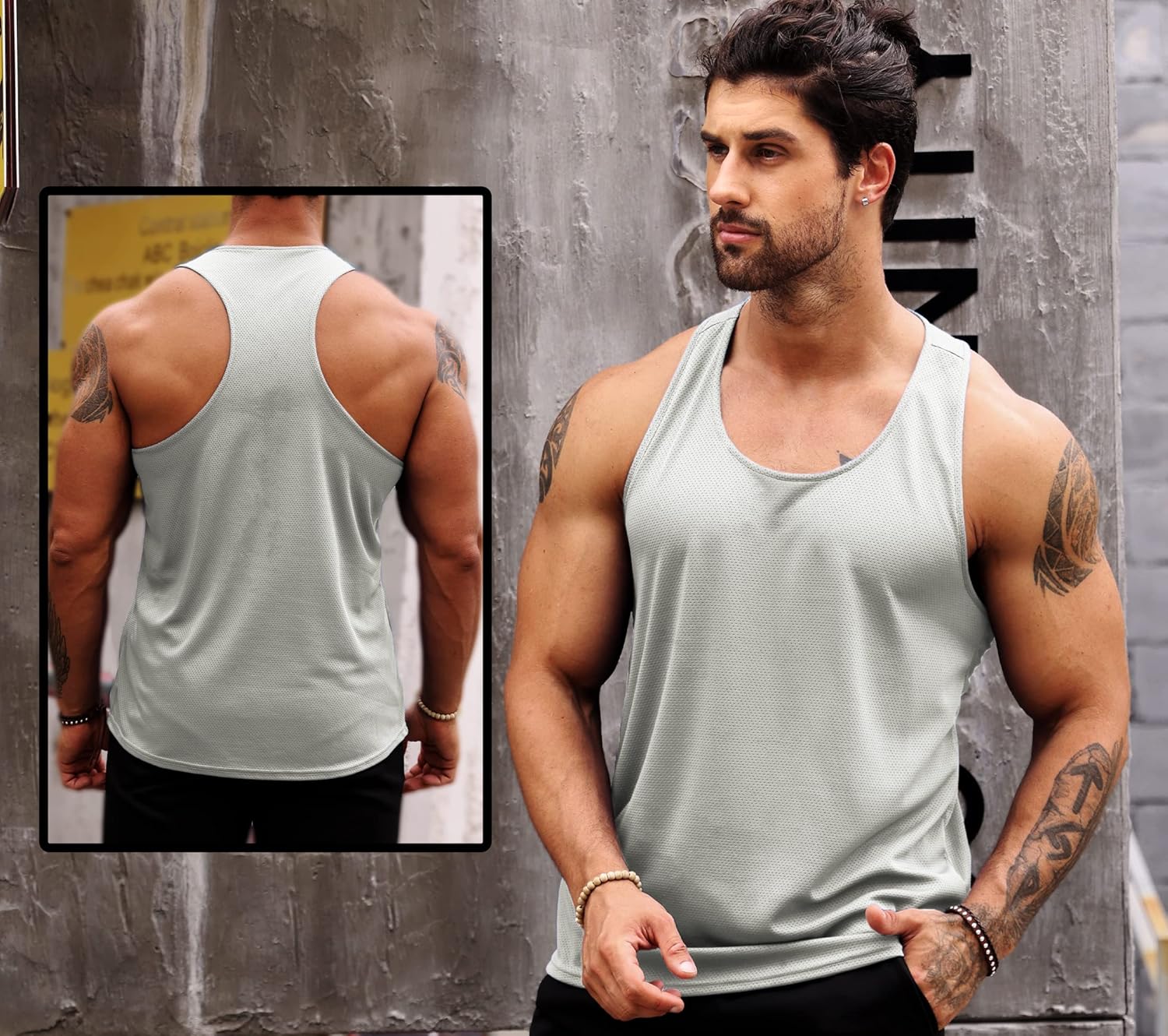 LecGee Men’s 3 Pack Gym Workout Tank top Dry Fit Y-Back Muscle T-shirts Sleeveless Mesh Bodybuilding Fitness Stringer