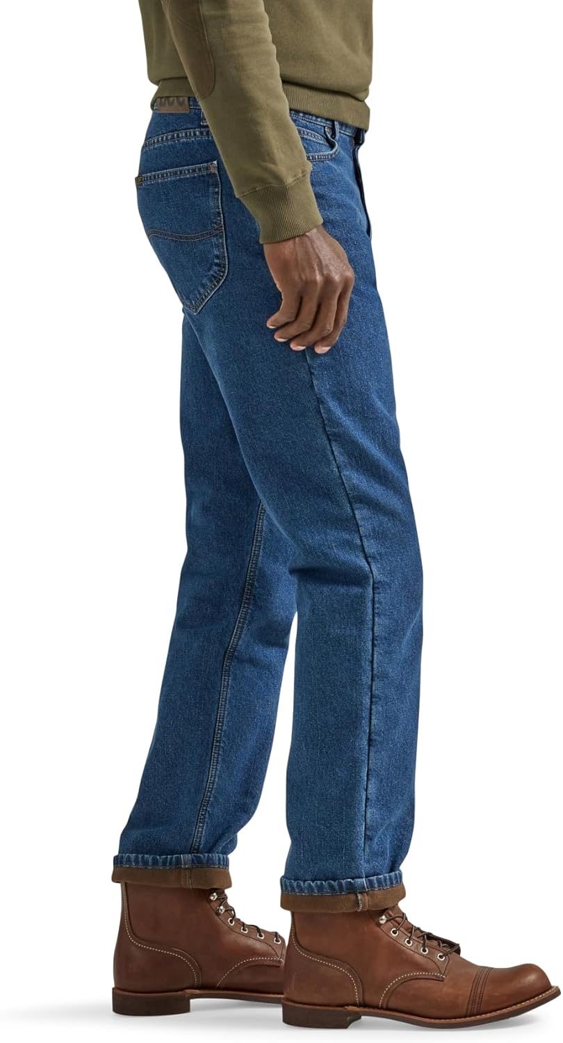 Lee Men’s Legendary Relaxed Straight Jean, Fleece-Lined Dark Wash, 38W x 30L
