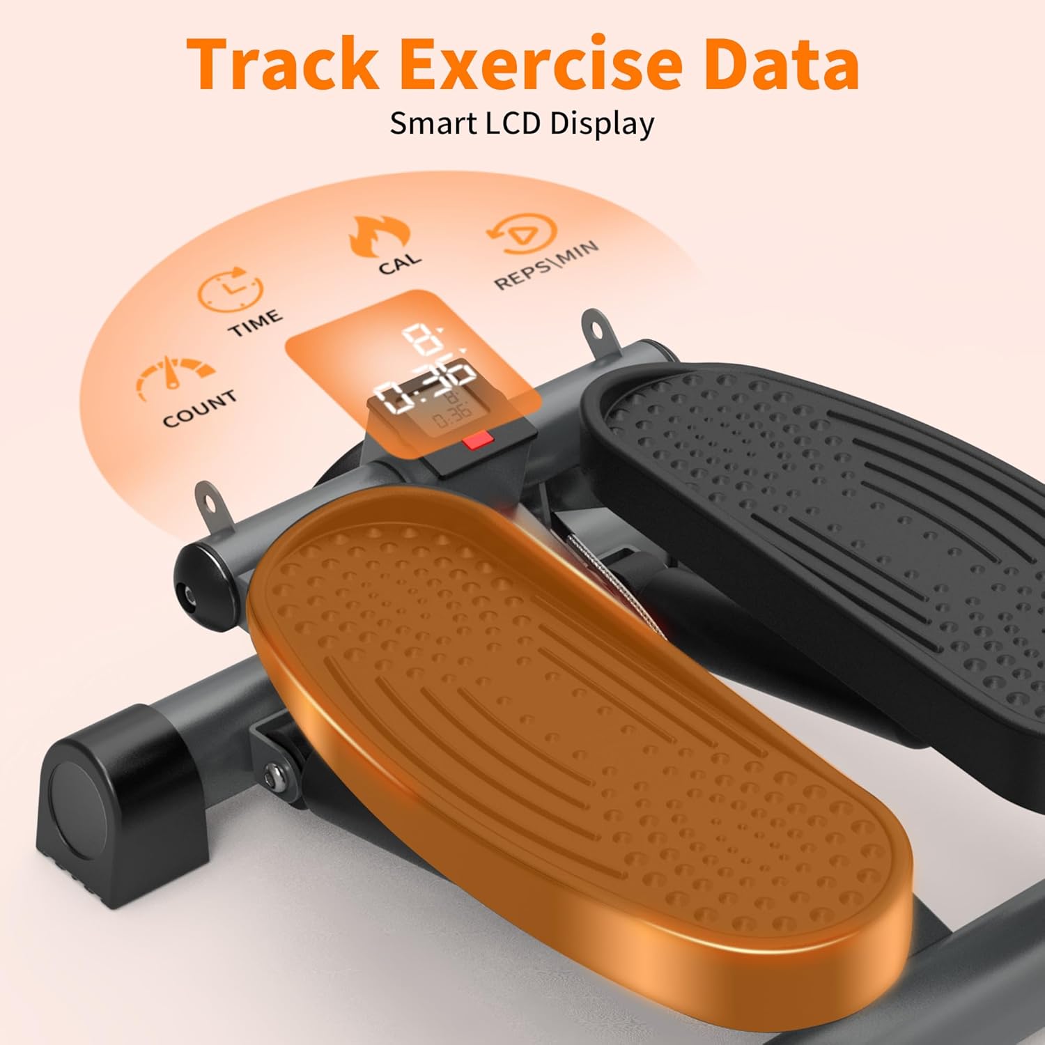 LeikeFitness Mini Stair Stepper for Exercise with Digital Monitor & Resistance Band Home Workout Equipment