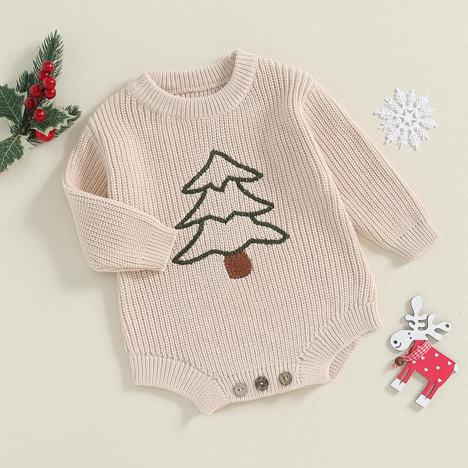 Lesimsam Newborn Baby Boy Girl Christmas Outfit Knit Sweater Romper Oversized Long Sleeve Bubble Romper Warm Winter Clothes