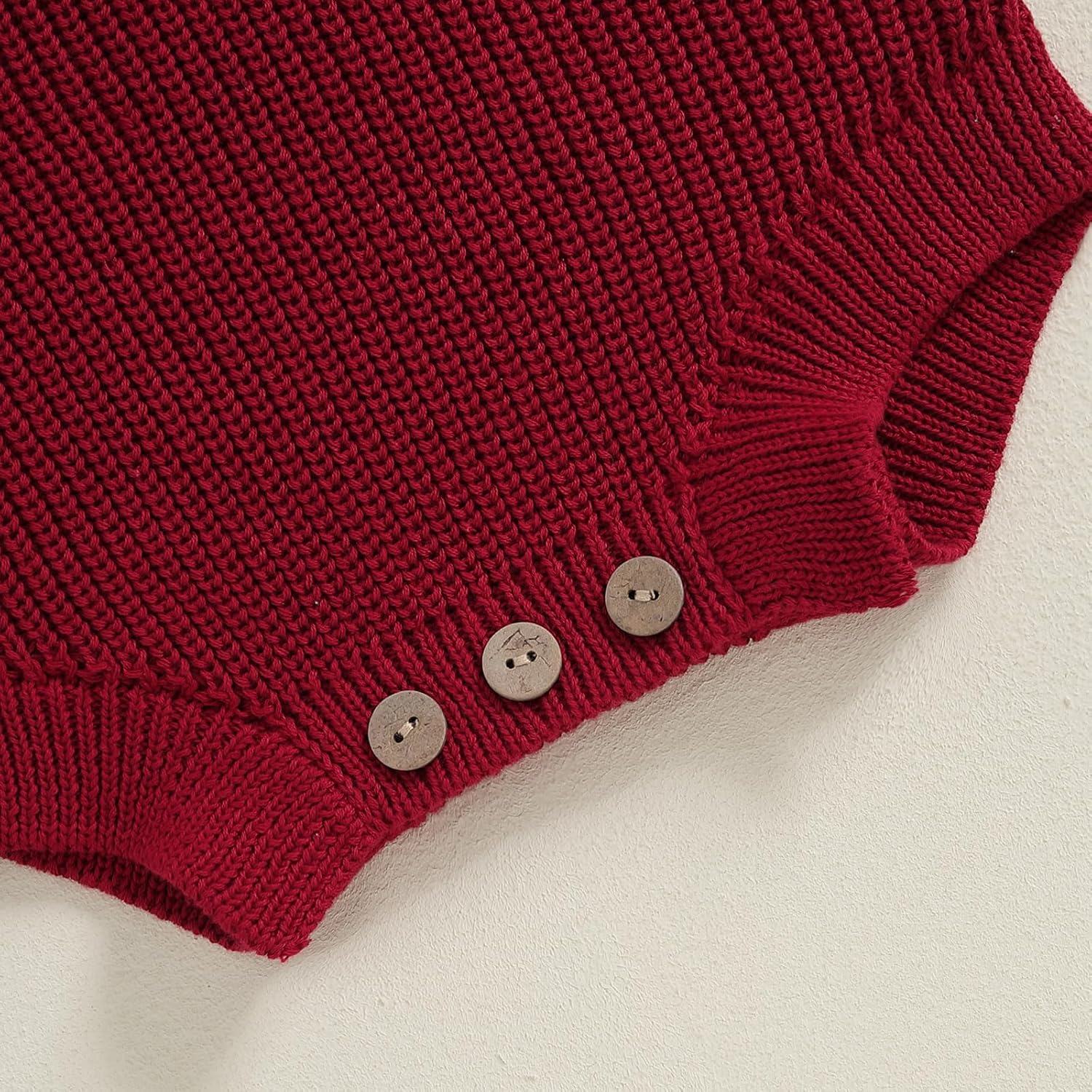 Lesimsam Newborn Baby Boy Girl Christmas Outfit Knit Sweater Romper Oversized Long Sleeve Bubble Romper Warm Winter Clothes