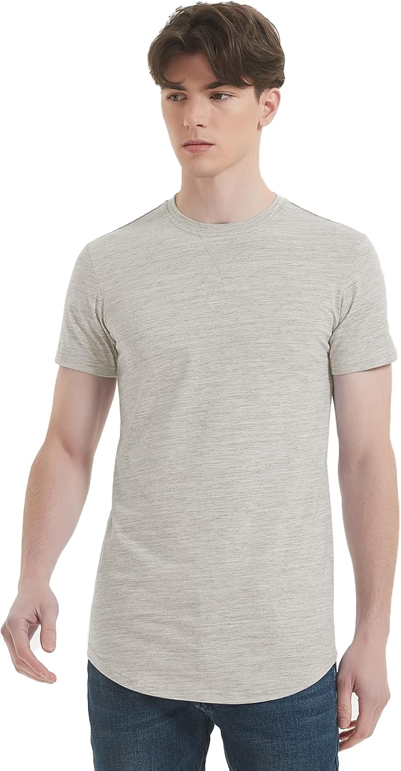 LETAOTAO Mens Hipster Longline T-Shirt Drop Cut Scallop Long Tail Slim Fit Bodybuilding Gym Muscle Workout Tee