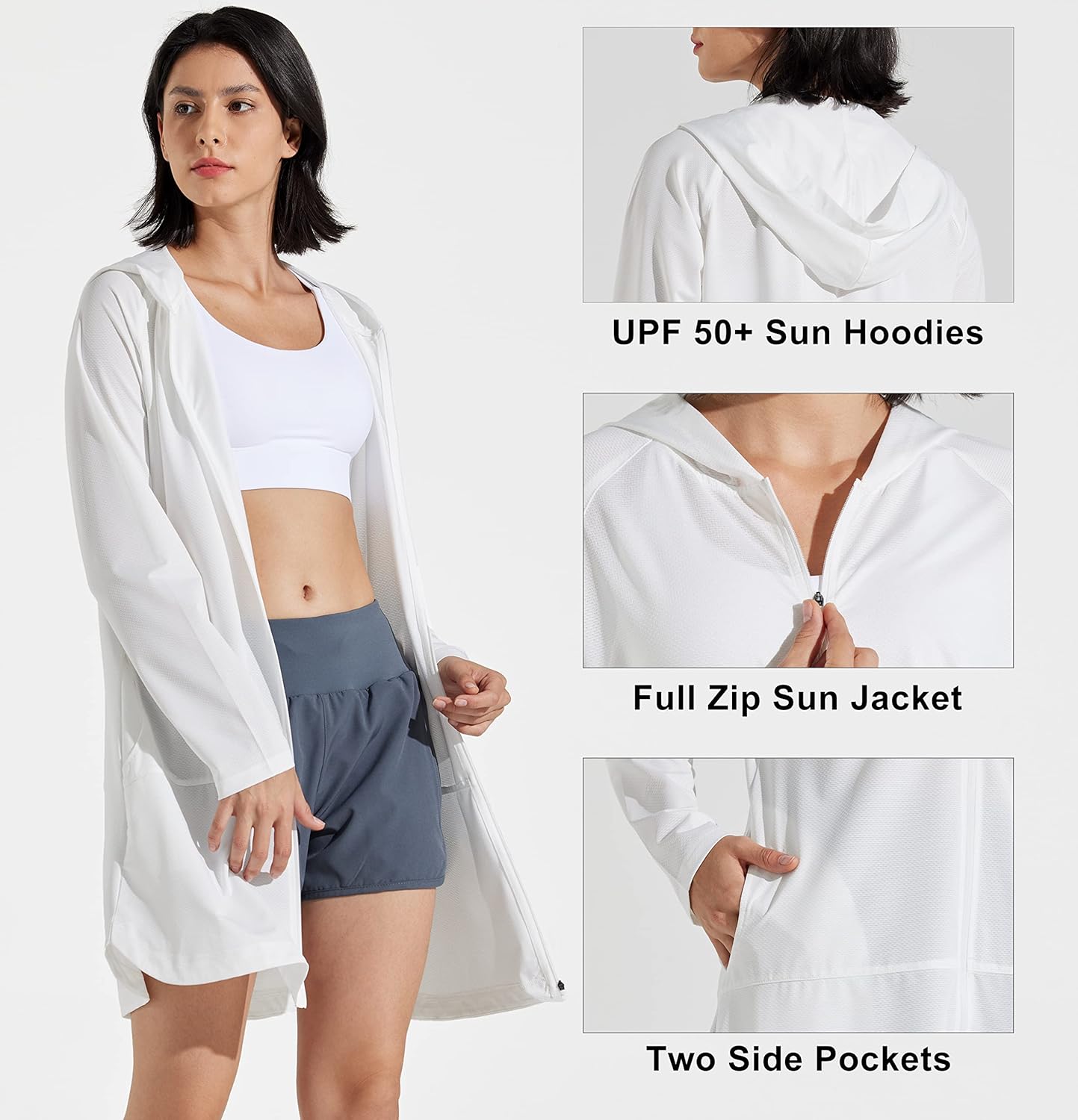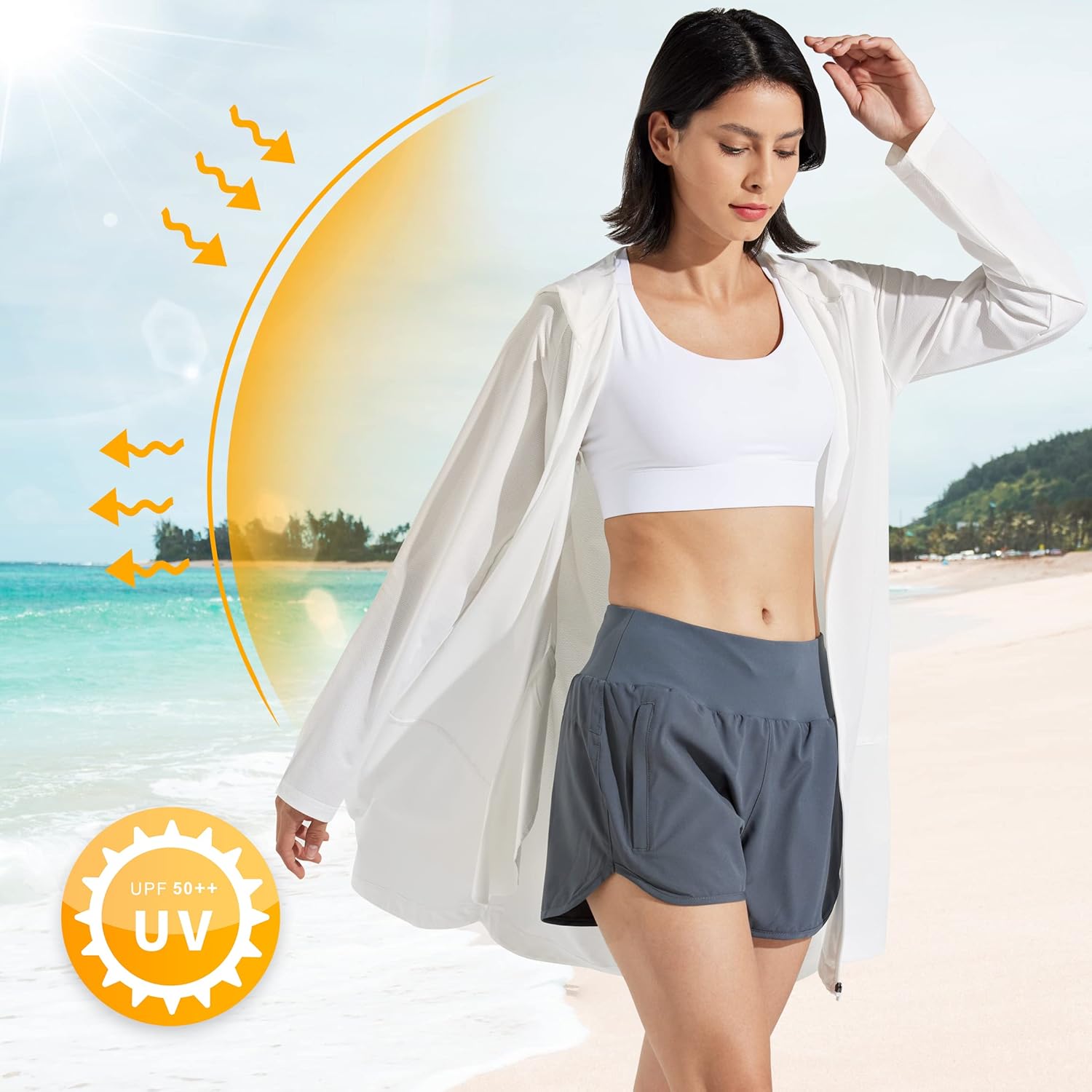 Libin Women’s Sun Protection Hoodie Jacket Long Sleeve Swim Beach Cover Up Lightweight Zip Hiking Shirt with Pockets UPF 50+