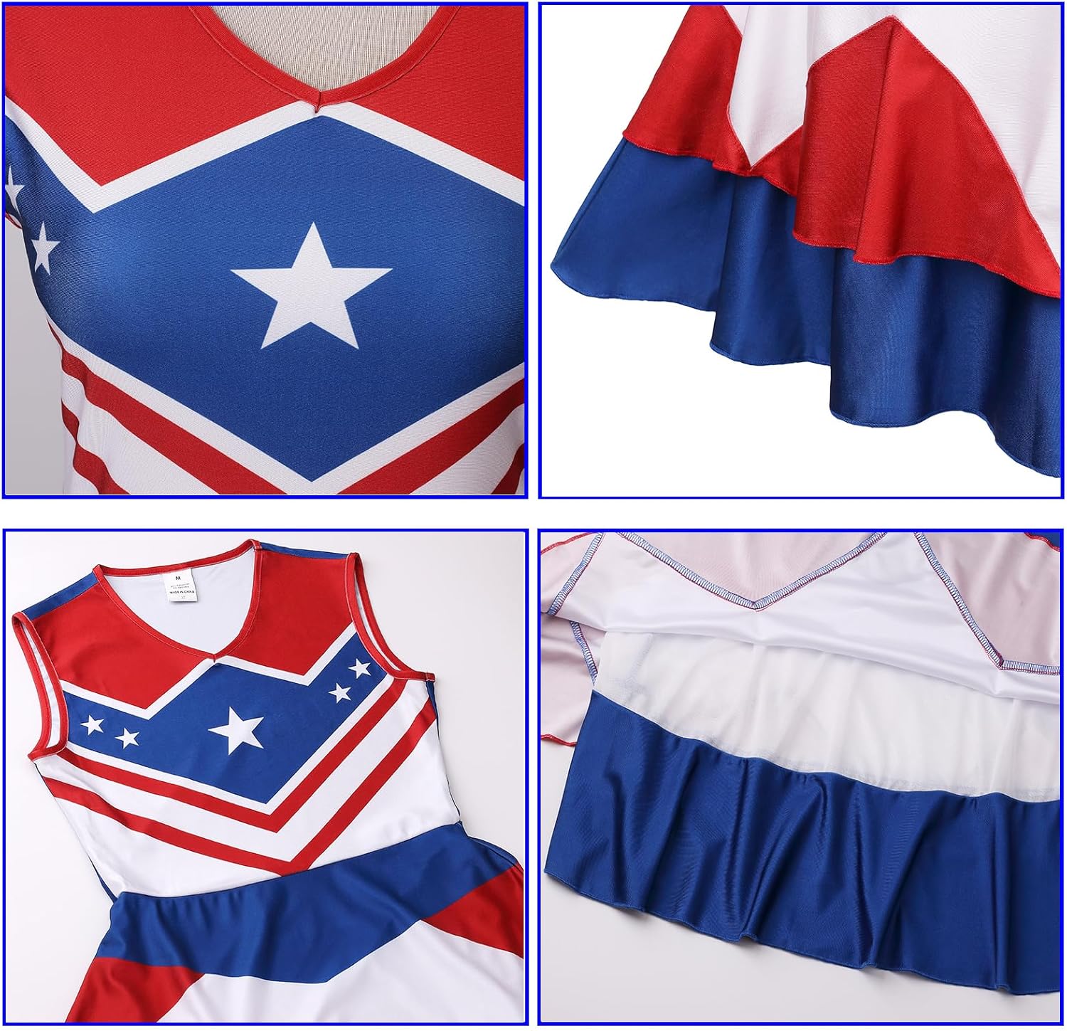 LMYOVE 4th of July Women Cheerleader Costume, Independence Day Cheerleader Uniform with Pom Poms & Hair Bow