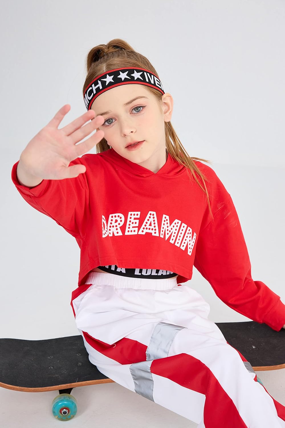 LOLANTA Girls 3 Piece Outfits Cropped Hoodie Tank Top Jogger Pants Set, Hip Hop Jazz Street Dance Skateboarding Clothes