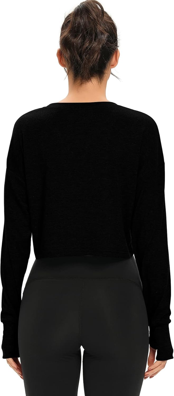 Long Sleeve Crop Top for Women Loose Workout Thumb Hole Tops