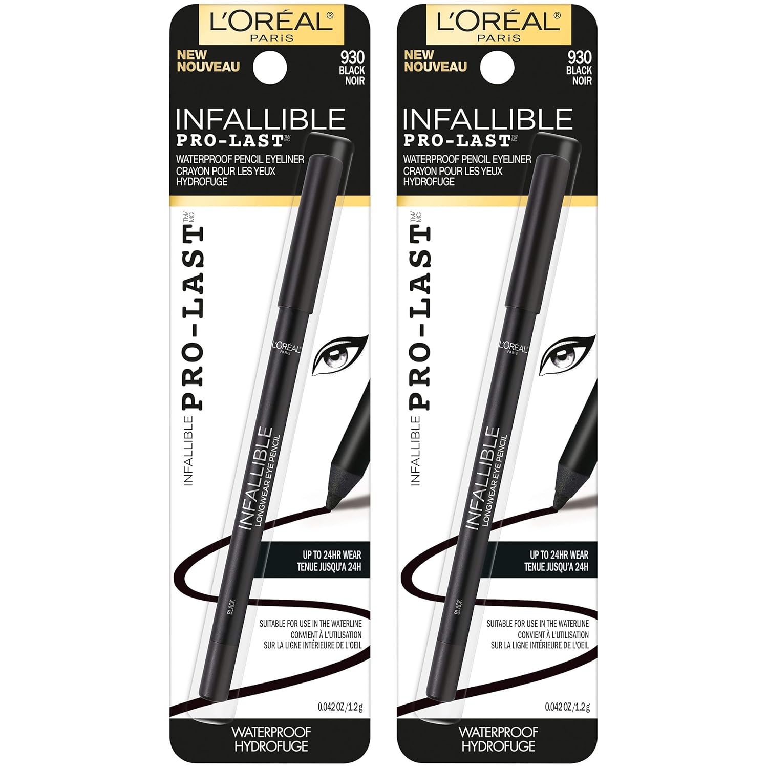 L’Oreal Paris Makeup Infallible Pro-Last Pencil Eyeliner, Waterproof and Smudge-Resistant, Glides on Easily to Create any Look, Black, 0.042 oz., 2 Count