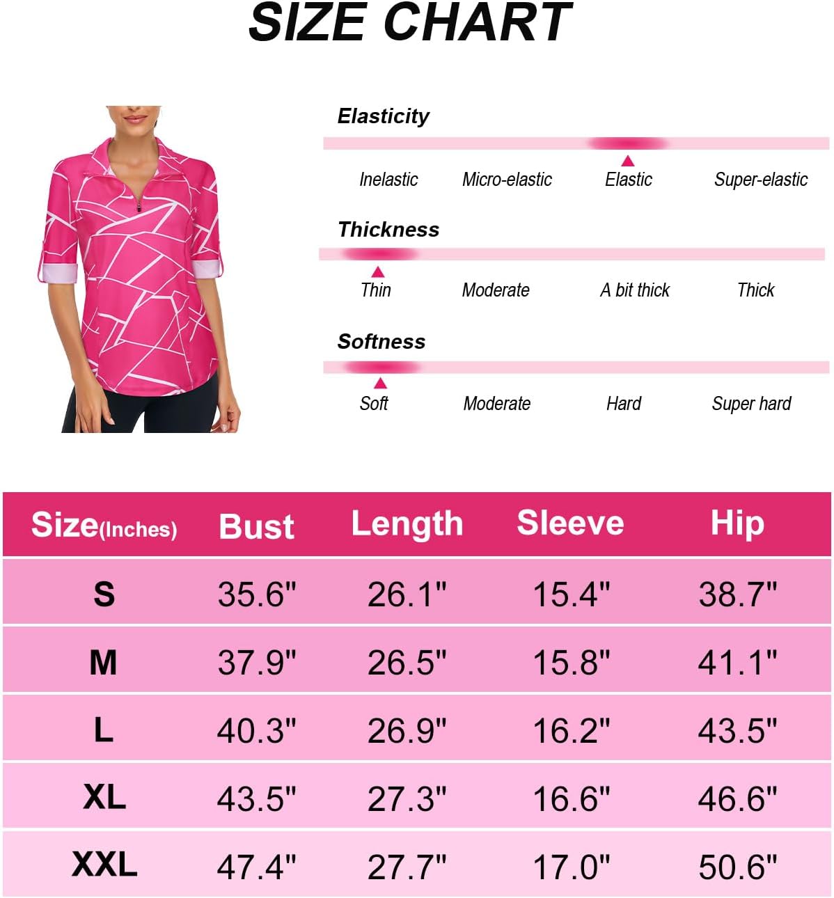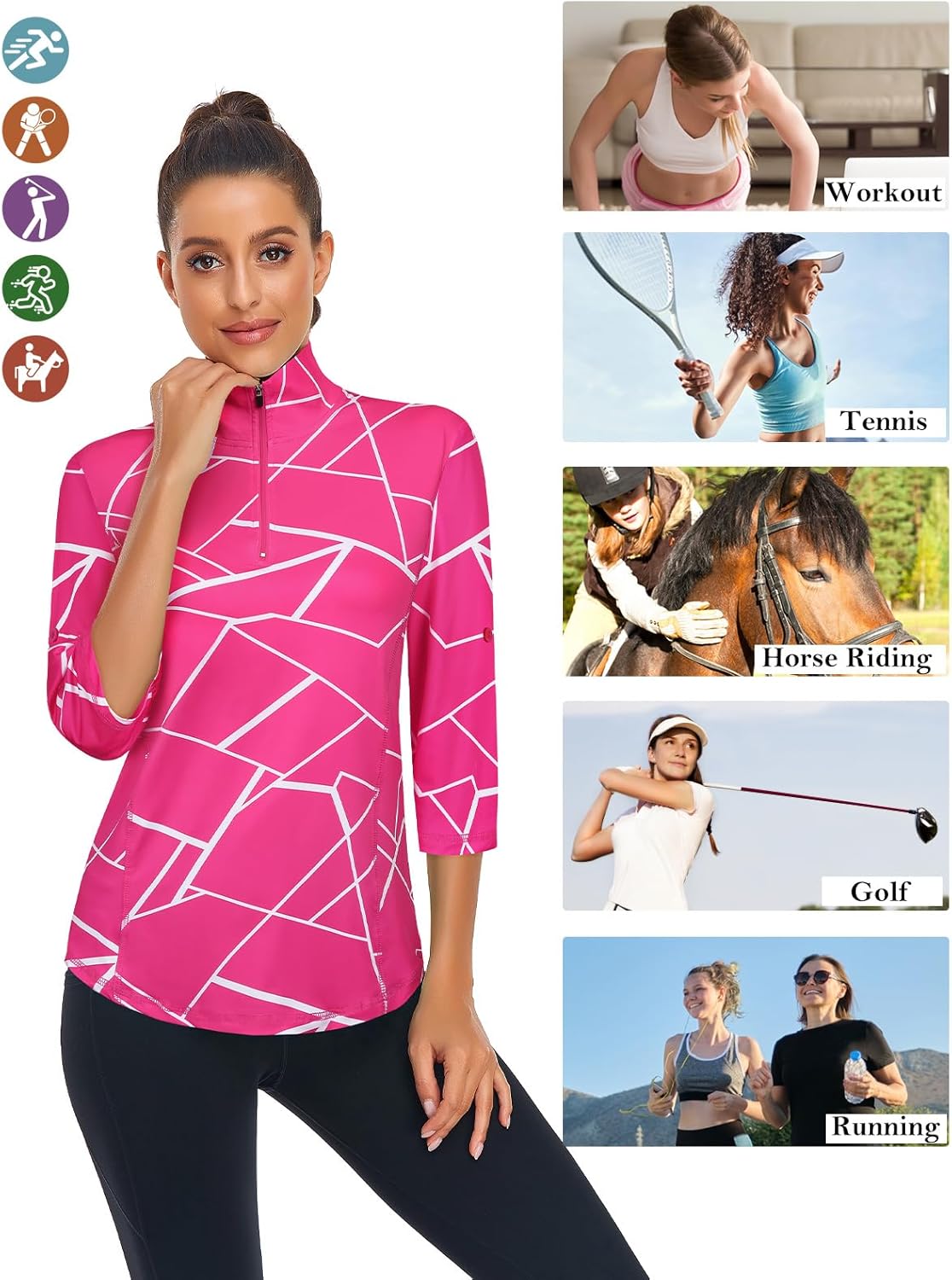 LURANEE Womens 3/4 Roll Sleeve 1/4 Zip Pullover Golf Shirts Athletic Hiking Running Workout Tops UPF 50+