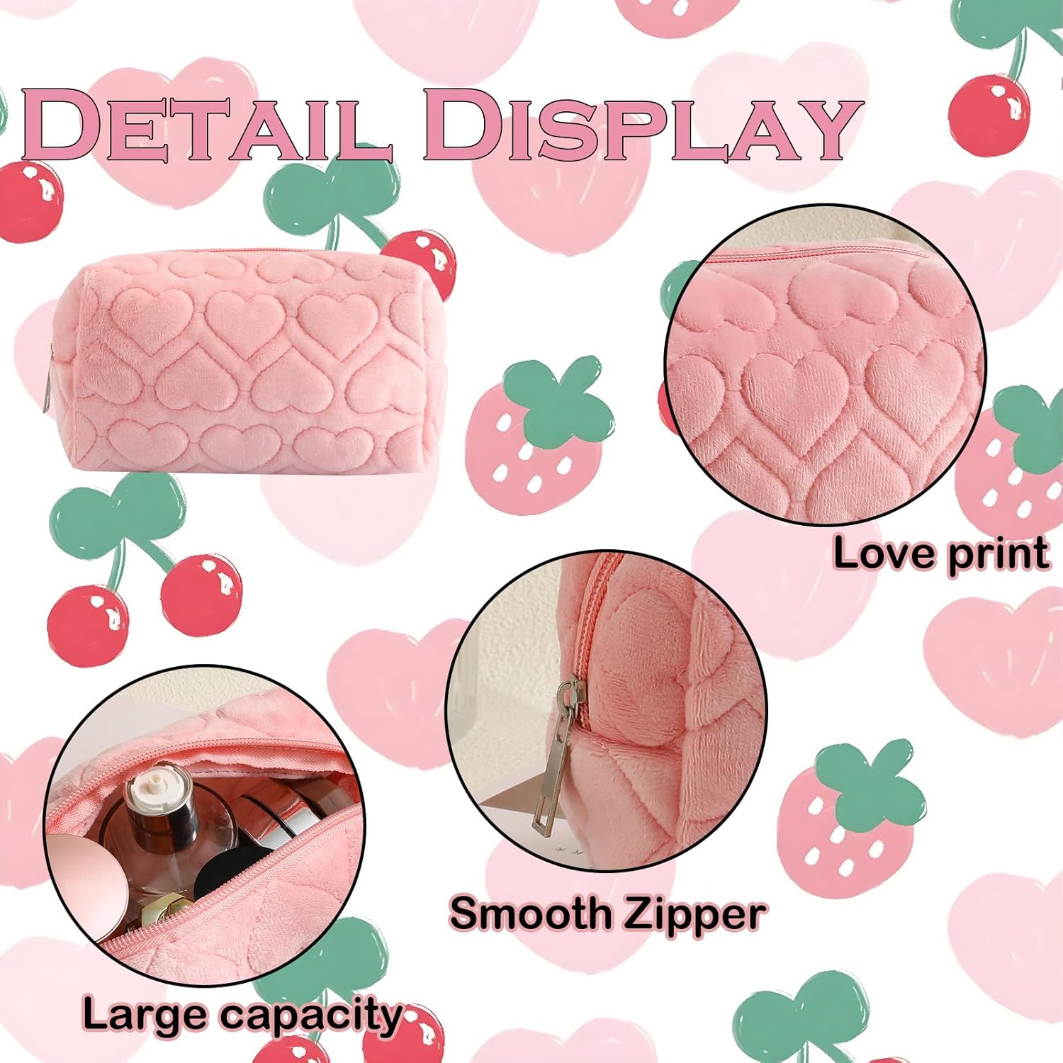 Material:plush. Large Capacity Multi functional storage bag. Zipper closure that securely keeps the bag closed and prevents the tiniest of your items from falling out. Built-in individual zipper pocket to storage small object. Foldable, portable and lightweight when travelling. Waterproof coating, washable. It’s the perfect choice for organization of your cosmetic tools. You can use it as toiletries bag,storage bag,travel bag, the bathroom receive bag,makeup receive.