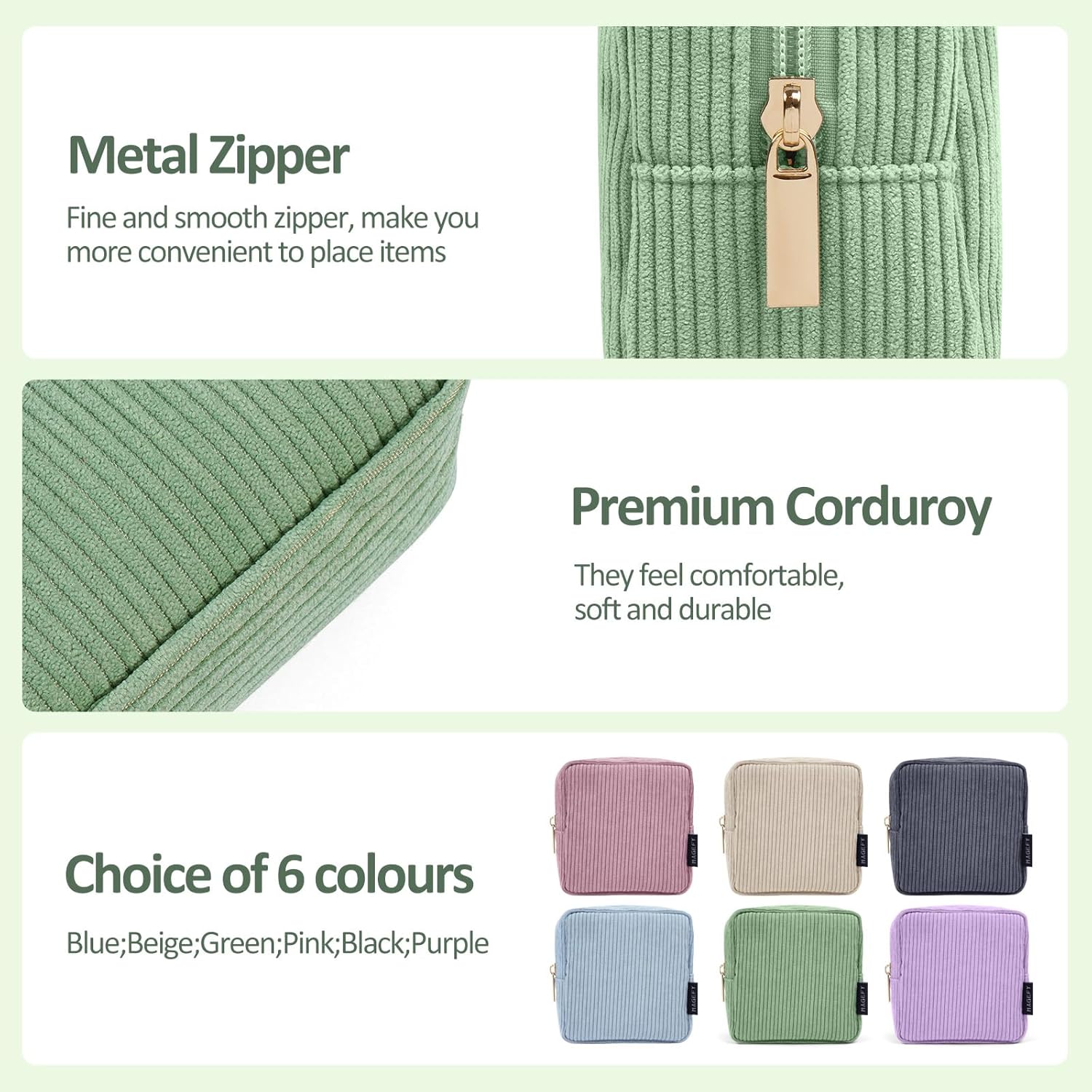 MAGEFY Small Makeup Bag Mini Cosmetics Bag Makeup Bag for Purse Corduroy Cute Cosmetic Pouch for Women with Slip-in Pockets (Green)