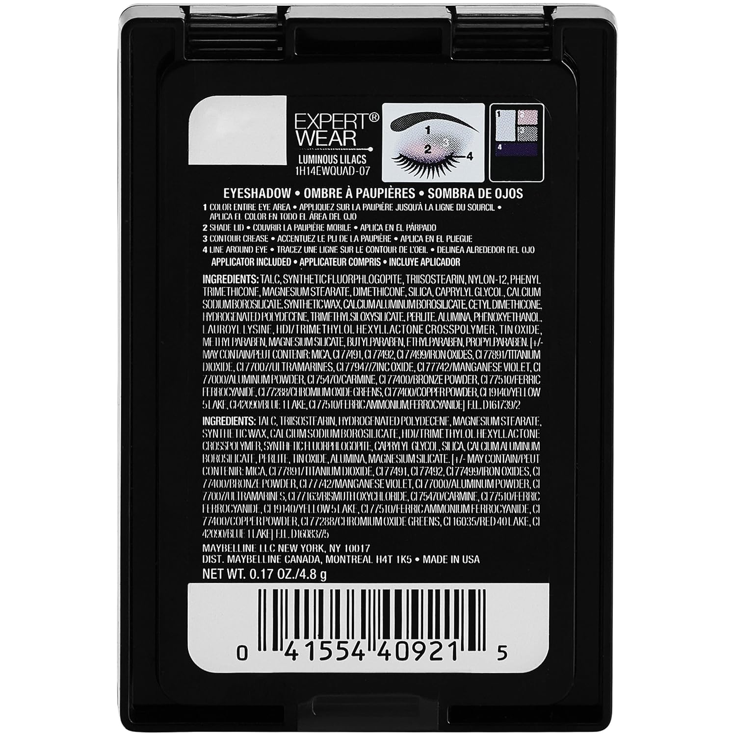 Maybelline New York Expert Wear Eyeshadow Quads, Luminous Lilacs, 0.17 oz.