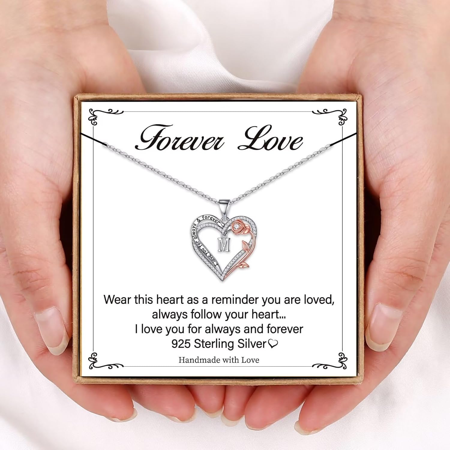 Memorjew Jewelry Gifts for Women – 925 Sterling Silver Necklace Rose Heart Initial Letter Heart Pendant Necklace Birthday Gifts for Women Wife Her