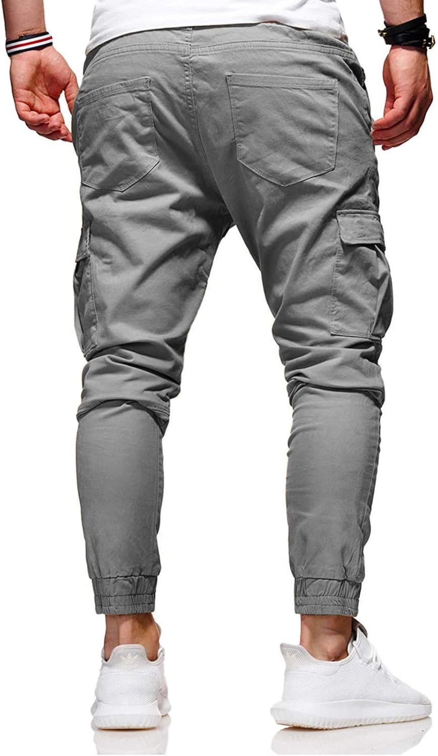 Men’s Casual Pants – Cotton Chino Cargo Pants for Hiking and Outdoor Recreation, Drawstring Sweatpants in Twill Track Jogging
