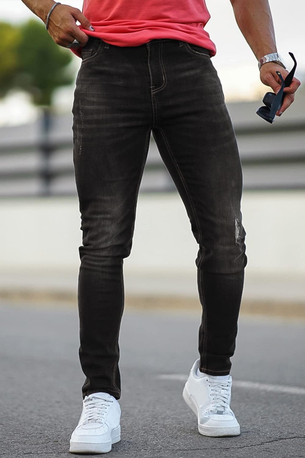 Men’s Classic Slim Fit Stretchy Jeans for Men Skinny Flex Denim Pants Ripped Designer