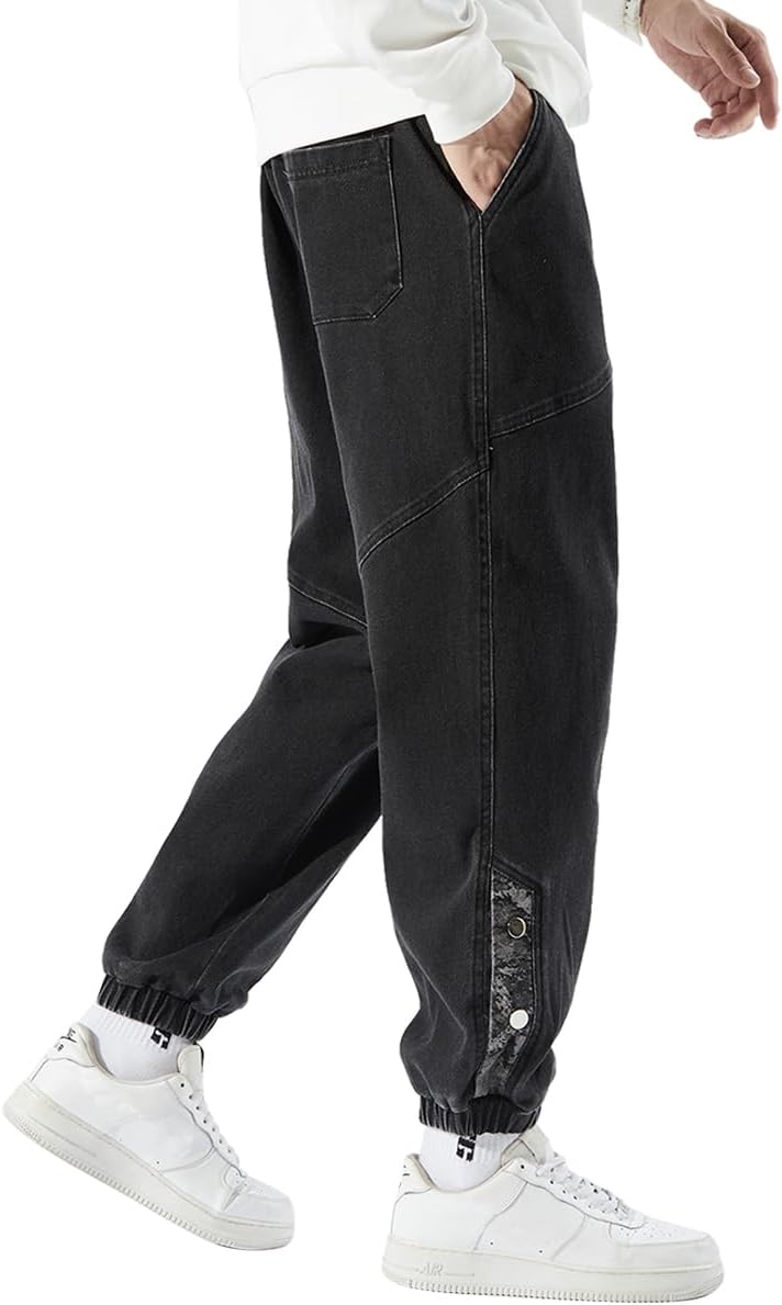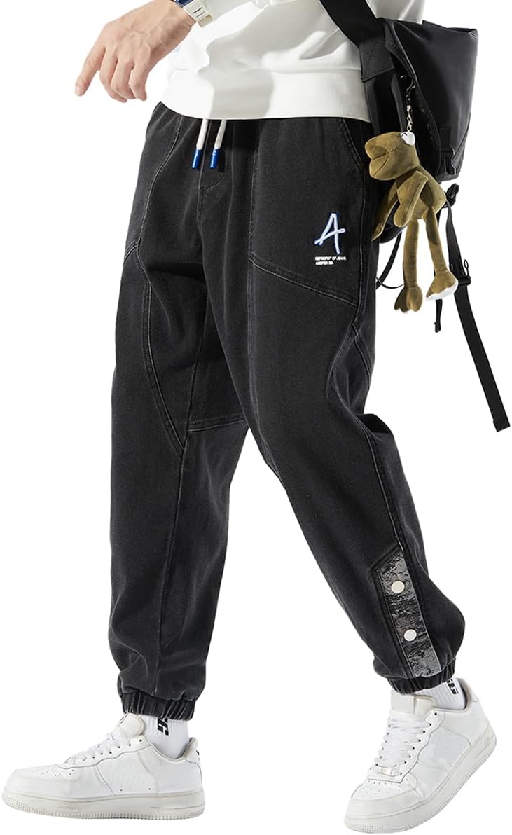 Men’s Denim Jogger Pants Cargo Jeans Hip Hop Streetwear Harem Pants Casual Sports Trousers