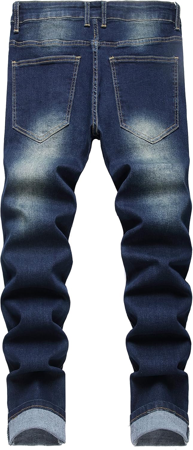 Men’s Ripped Jeans,Slim Fit Distressed Straight Leg Fashion Denim Pants