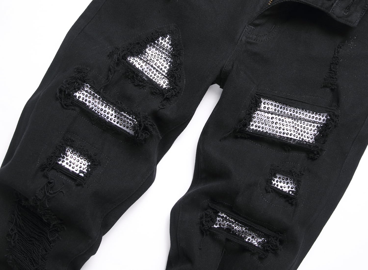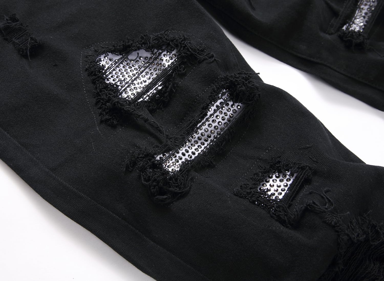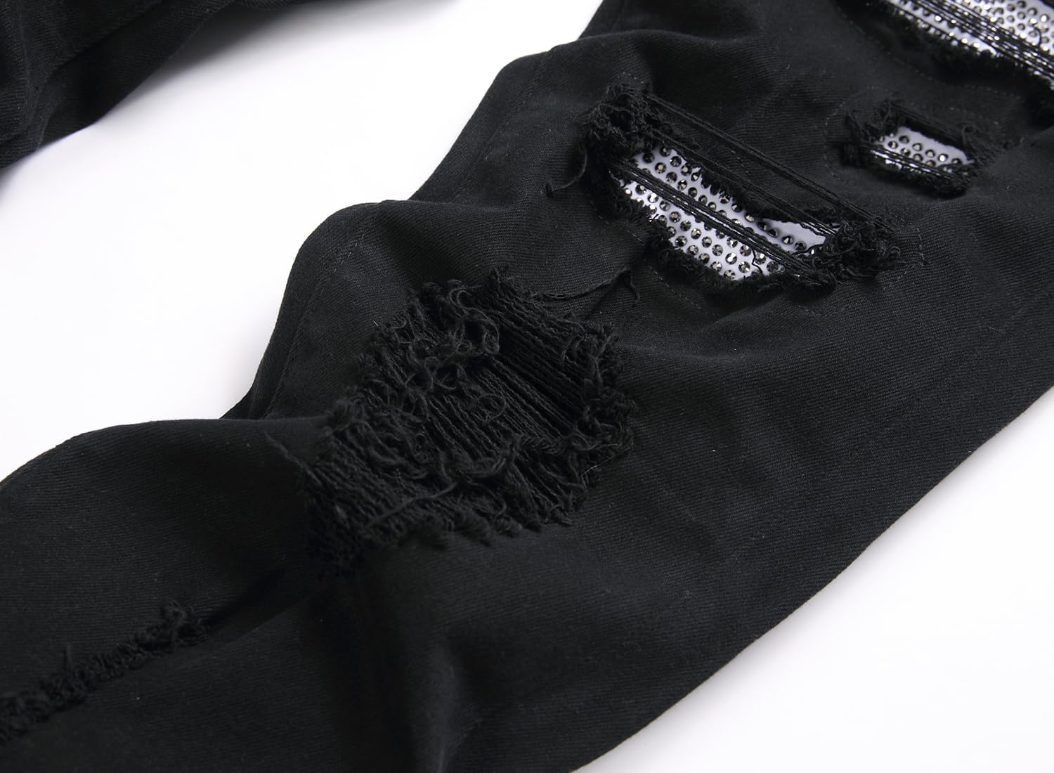 Men’s Ripped Patch Elastic Jeans Fashion Slim Fit Regular Denim Pants