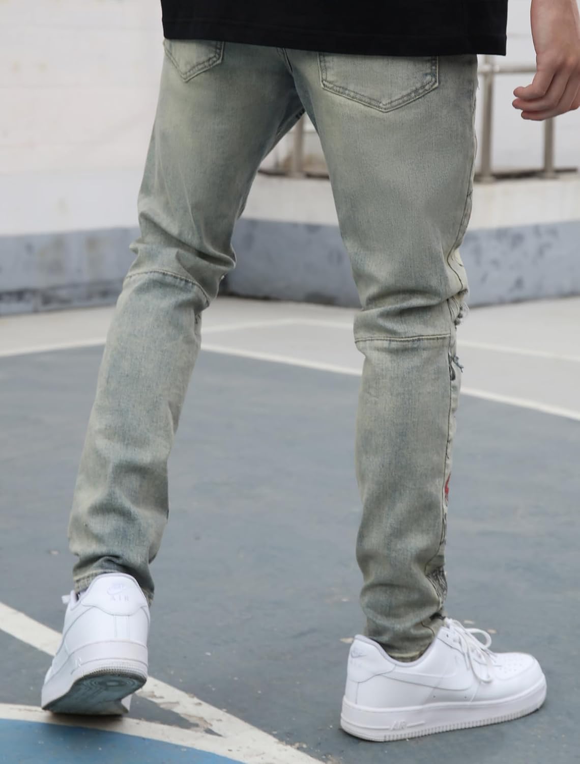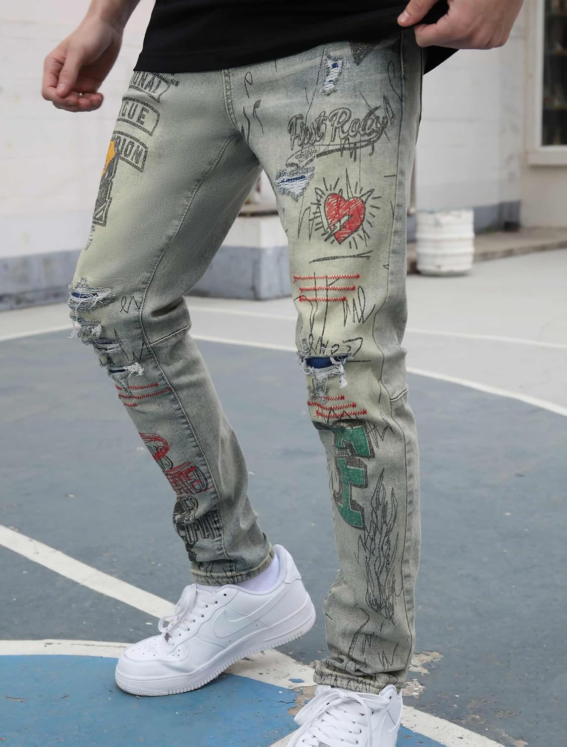 Men’s Ripped Skinny Jeans Slim Fit Stretch Jeans for Men Distressed Straight Leg Denim Pants