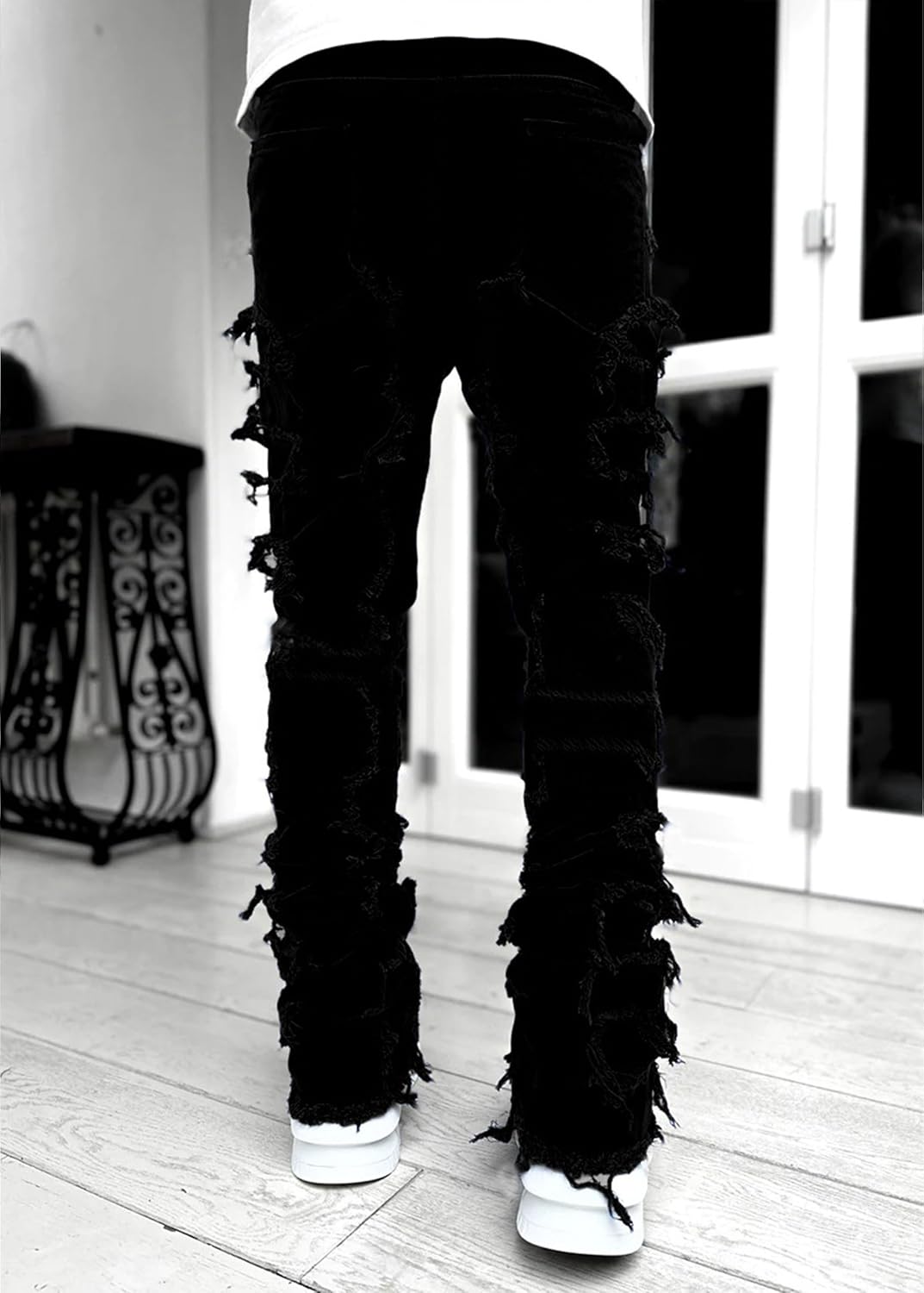 Mens Stacked Jeans Y2k Slim Fit Skinny Ripped Jeans Distressed Destroyed Denim Pants Emo Hip Hop Jeans