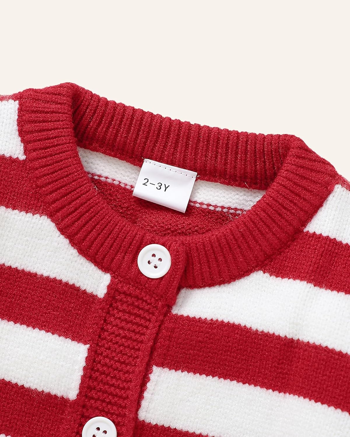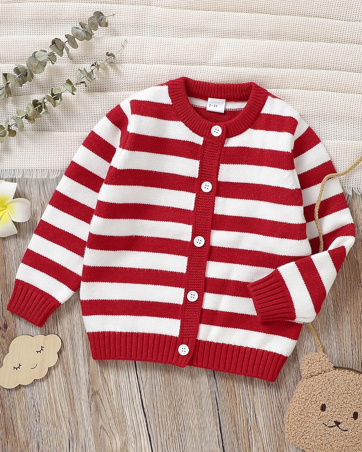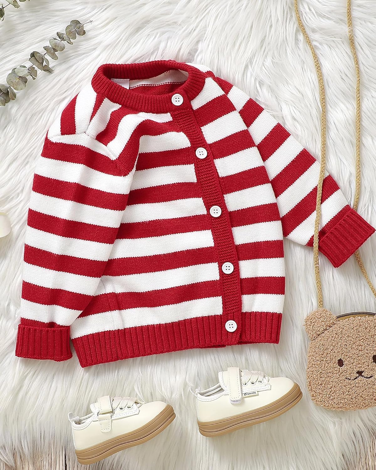 Mikrdoo Girls Cardigan Sweaters Striped School Uniform Knit Sweater 2-8 Years Button Long Sleeve Kids Outerwear