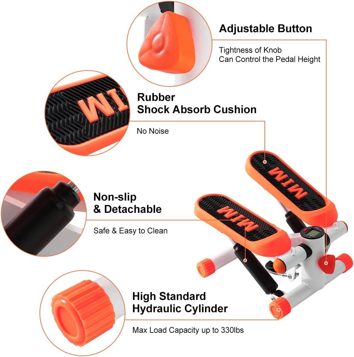 🐠【Multifunctional LCD Digital Monitor】: The step machine for exercise for home comes with LED monitor, which can record your exercise time, step count and calorie burn, can scan through each metric automatically. So you can effectively track and optimize your each exercise performance, very convenient to use at home or office.