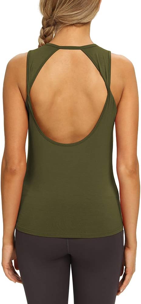 Mippo Workout Tops for Women Open Back Yoga Shirts Tank Tops Athletic Tops Gym Workout Clothes