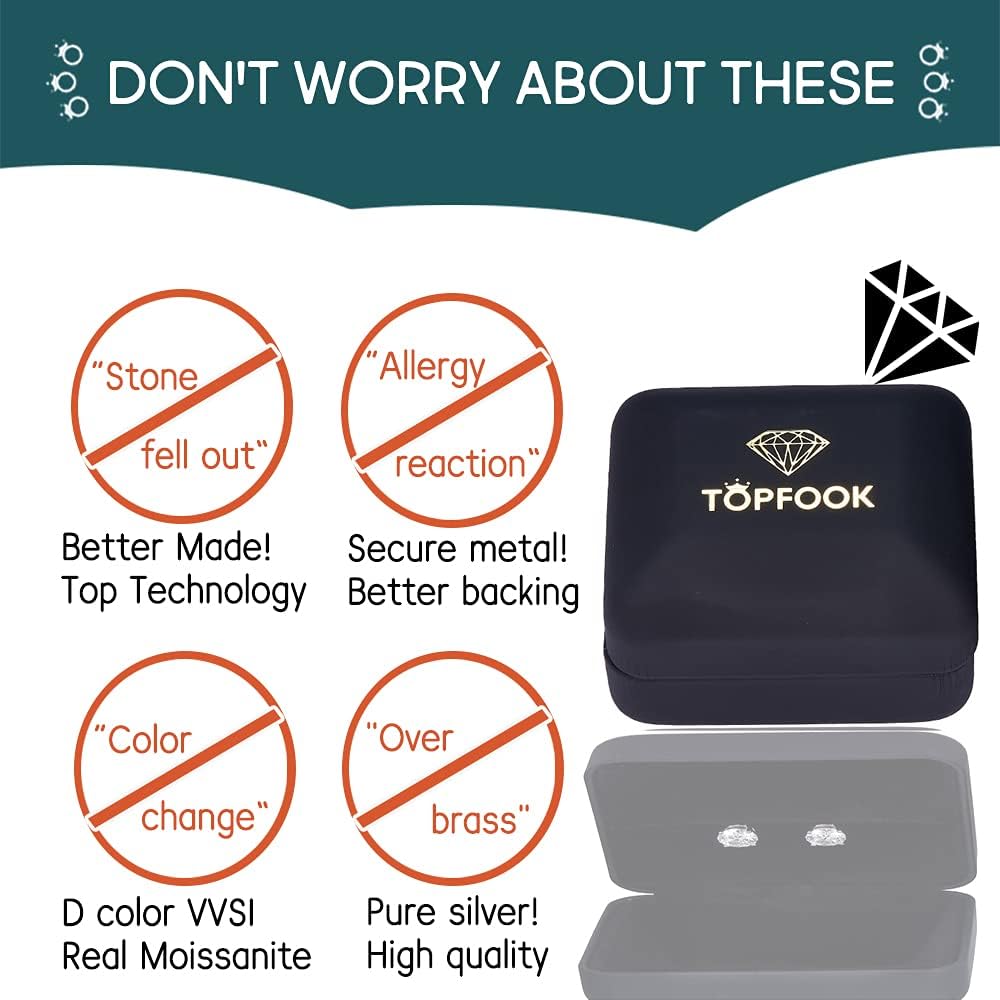 Be the first to review “Moissanite Diamond Earrings for Women 18K Gold Plated 925 Sterling Silver Bezel Set Round Studs Topfook Jewelry”
