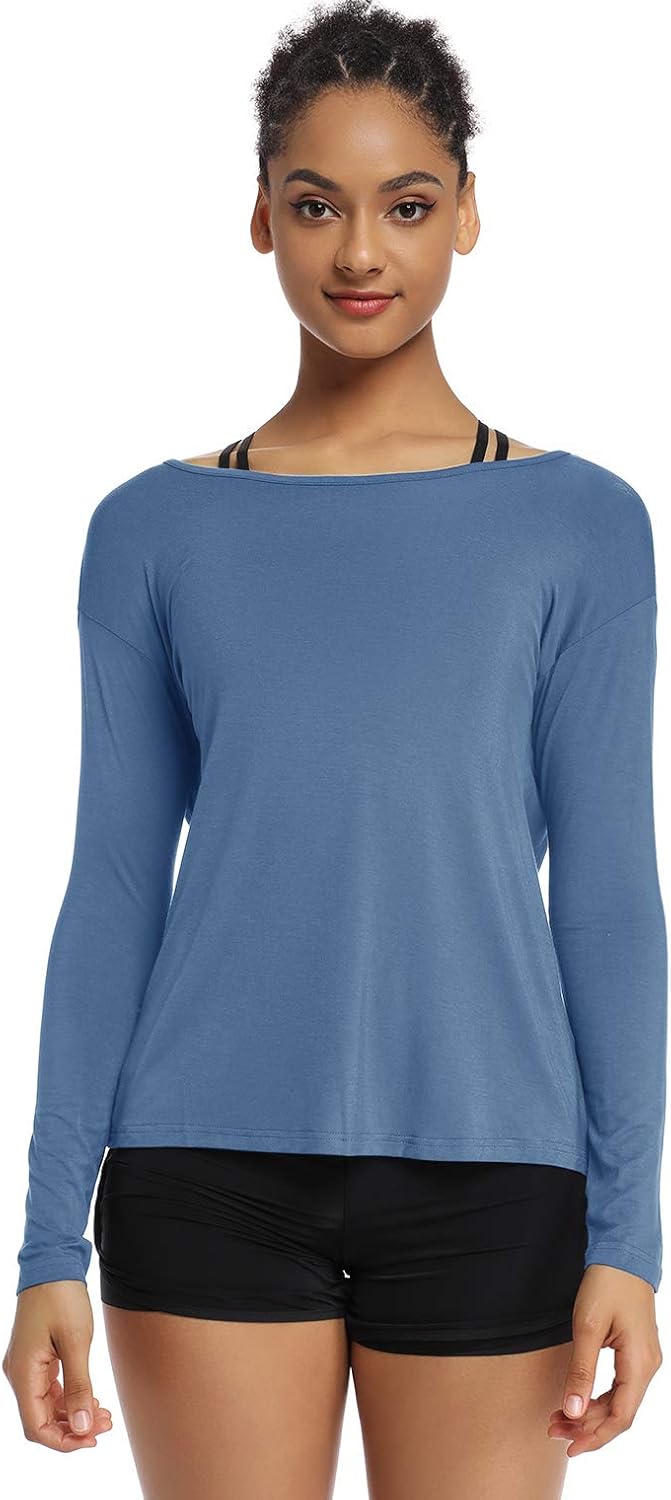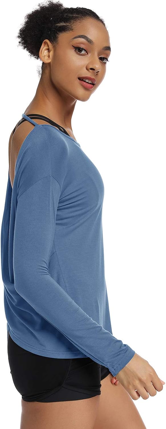 Cute open back design make it more stylish for workout top.Soft skin modal fabric super easy for the summer outdoor or gym fitness.Long sleeve open back yoga shirts long sleeve workout tops great macth with sports bra.