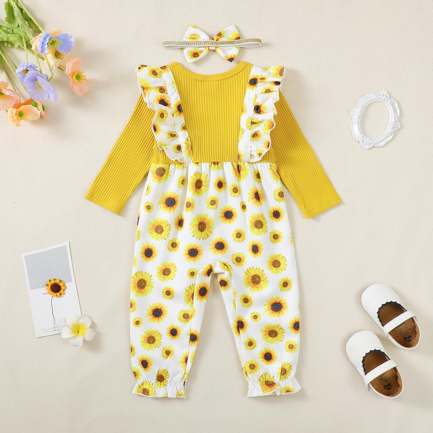 Newborn Baby Girls One Piece Romper Jumpsuit Cute Floral Print Ruffle Sleeve Fall Winter Outfits