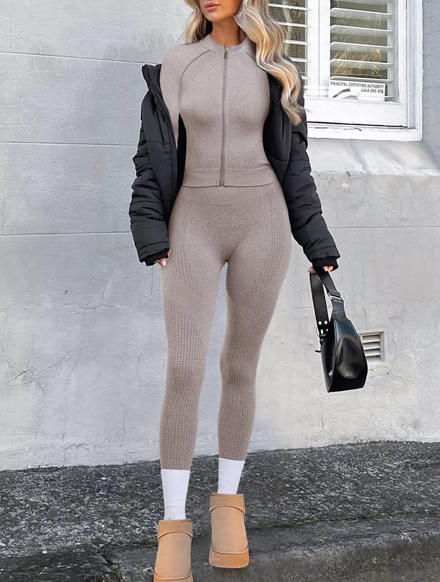 OLCHEE Womens Workout Sets 2 Piece – Seamless Yoga Outfits Long Sleeve Zipper Jacket High Waist Leggings Butt Lifting Gym Set
