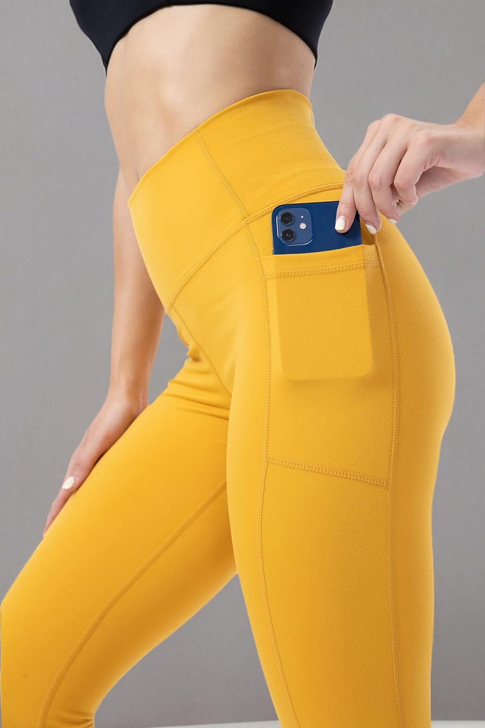 ONGASOFT Women High Waist Yoga Workout Leggings Tummy Control Brushed Soft Tight Pants with Side Pockets