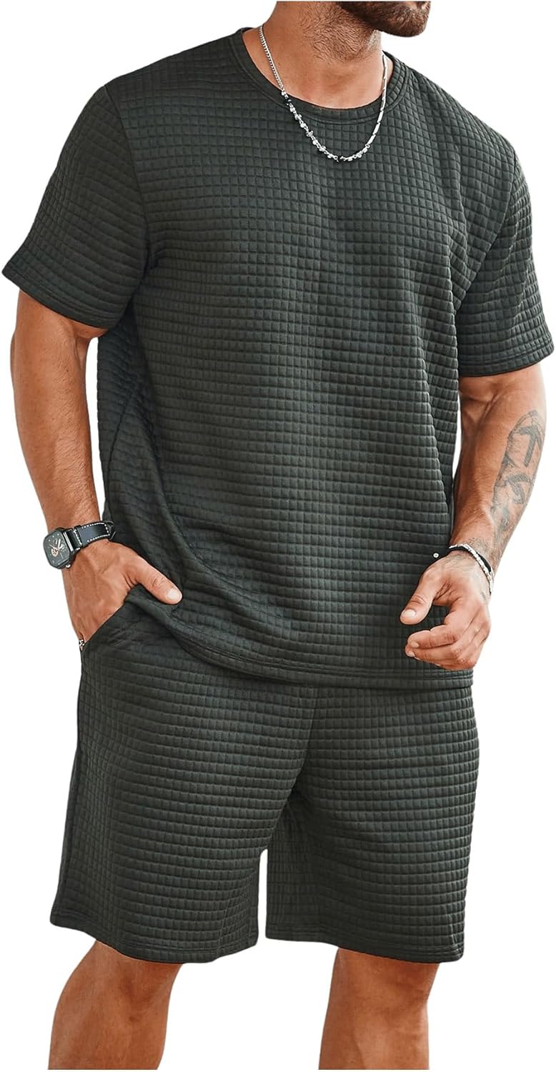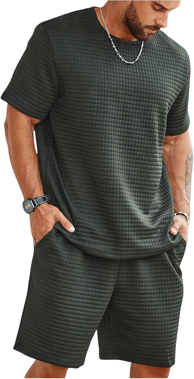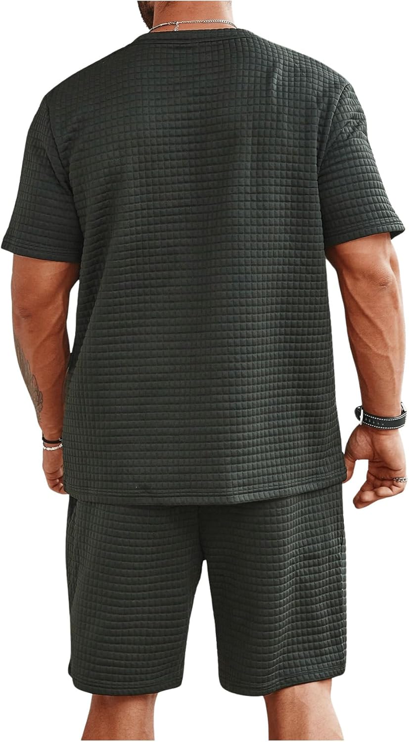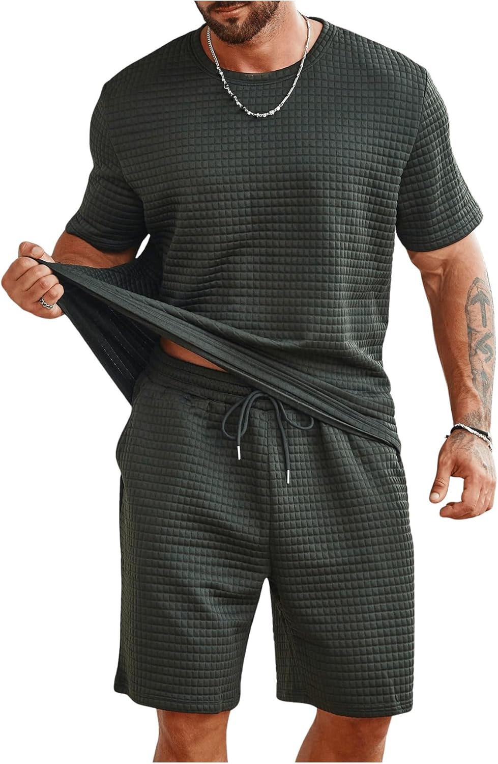 OYOANGLE Men’s 2 Piece Outfits Round Neck Short Sleeve Tee and Drawstring Shorts with Pockets Sets