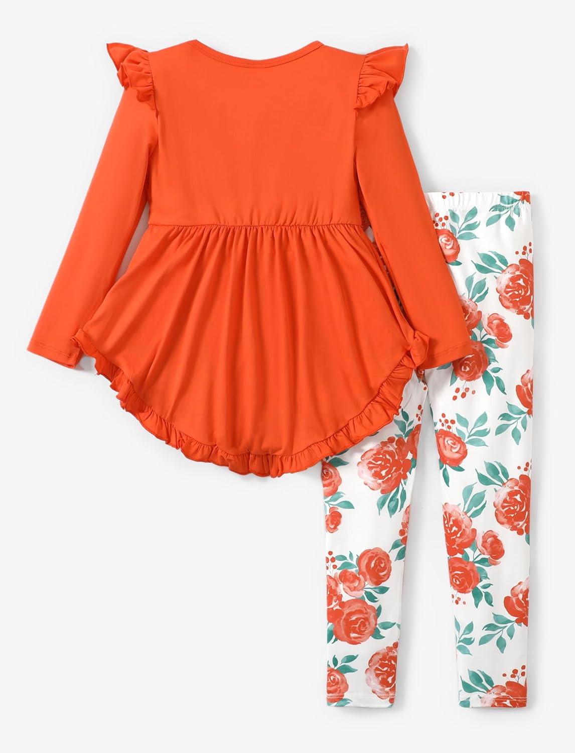 PATPAT Toddler Kids Girls 2Pcs Clothes Set Bowknot Design Ruffle Hem Long Sleeve Top and Floral Print Pant Outfits