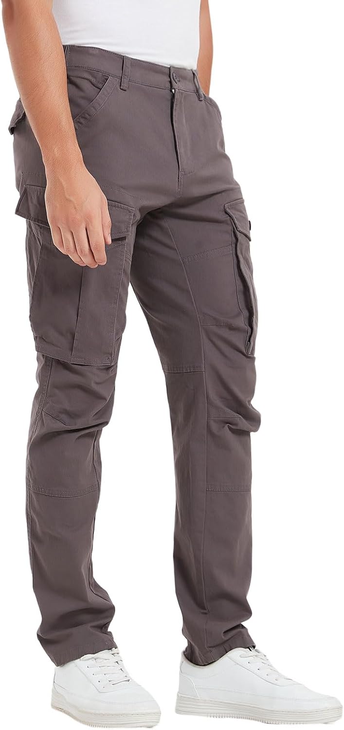 Plaid&Plain Men’s Cargo Pants Slim Fit with Articulated Knees