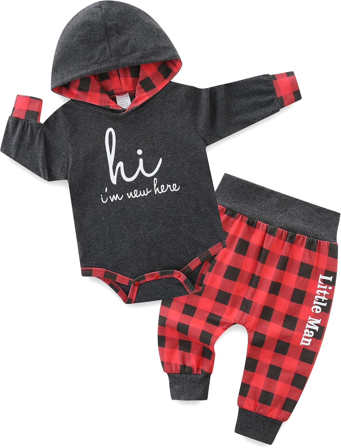 Preemie Infant Baby Boys Letter Print Long Sleeve Romper Hoodies + Pants 2PCS