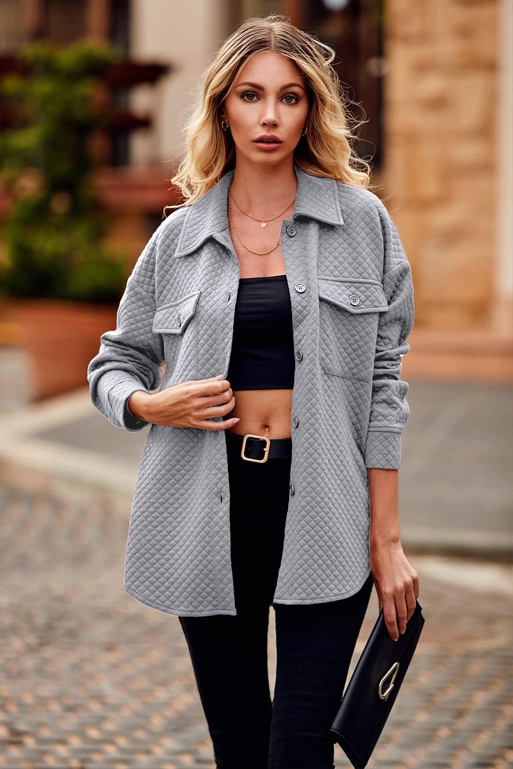 PRETTYGARDEN Women’s 2024 Winter Jackets Lapel Coat Outerwear Casual Long Sleeve Button Down Blouse Shirts Tops
