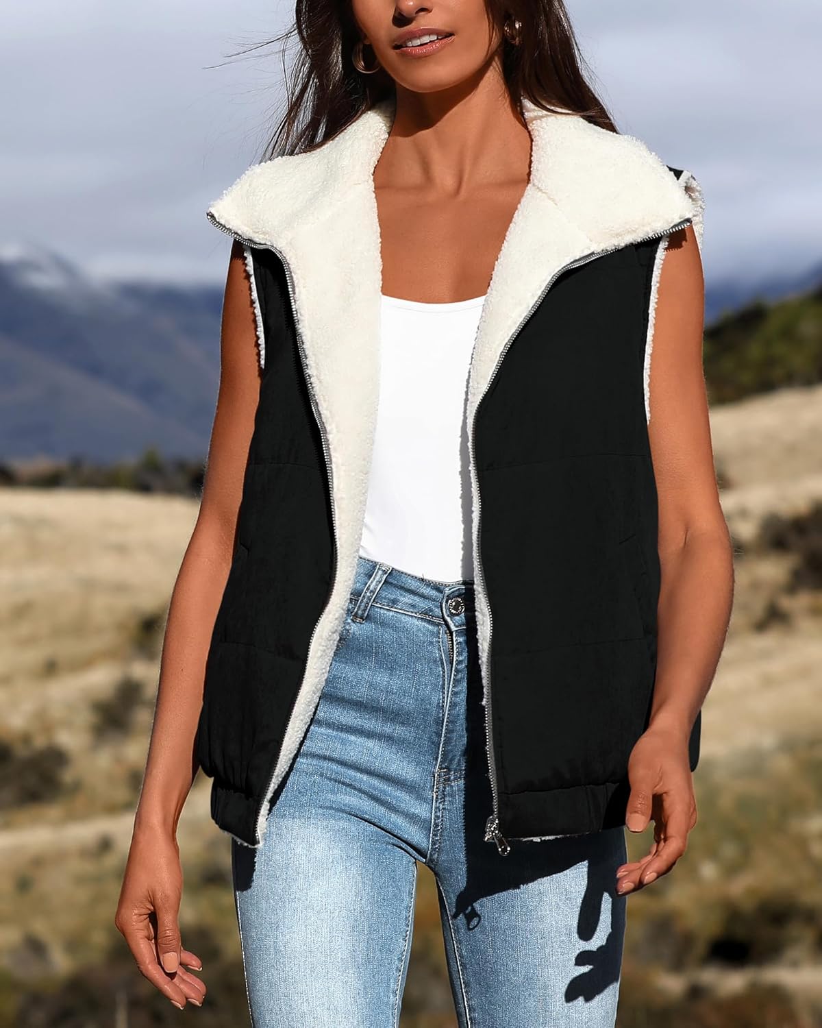 PRETTYGARDEN Womens Fleece Vest Jacket 2024 Fall Sleeveless Sherpa Puffer Outfits Zip Up Winter Coat Outerwear