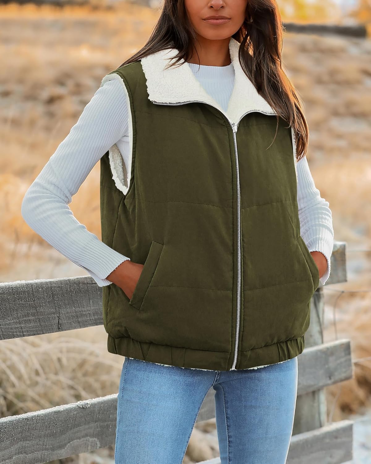 PRETTYGARDEN Womens Fleece Vest Jacket 2024 Fall Sleeveless Sherpa Puffer Outfits Zip Up Winter Coat Outerwear