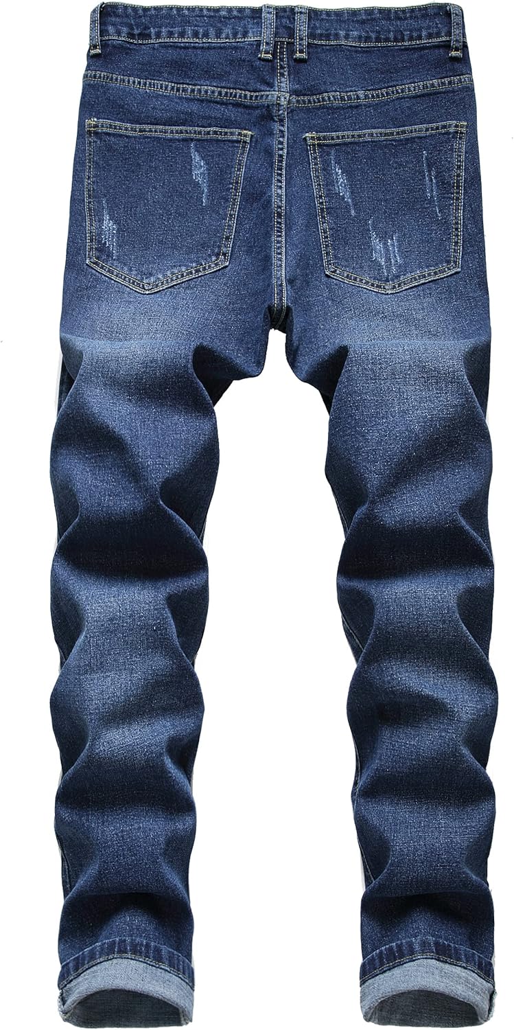 QIMYUM Mens Ripped Jeans, Distressed Destroyed Slim Fit Straight Leg Denim Pants