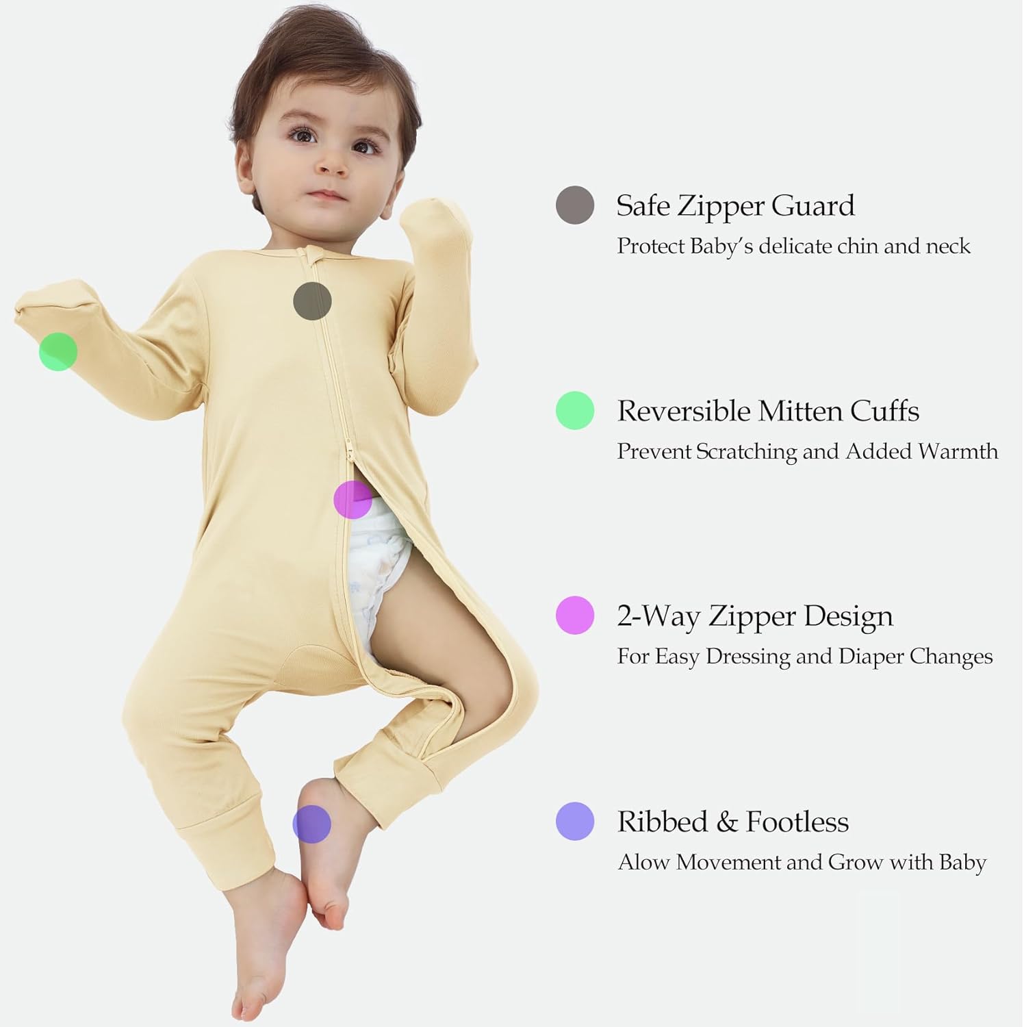 Rayon from Bamboo Baby Pajamas, Baby Sleeper with Mitten Cuffs and 2 Way Zipper, Rompers for Baby Boy Girls 0-24 Months