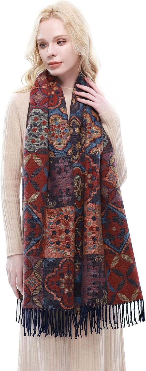 RIIQIICHY Reversible Pashmina Scarf for Women Jacquard Shawl Wrap Scarves