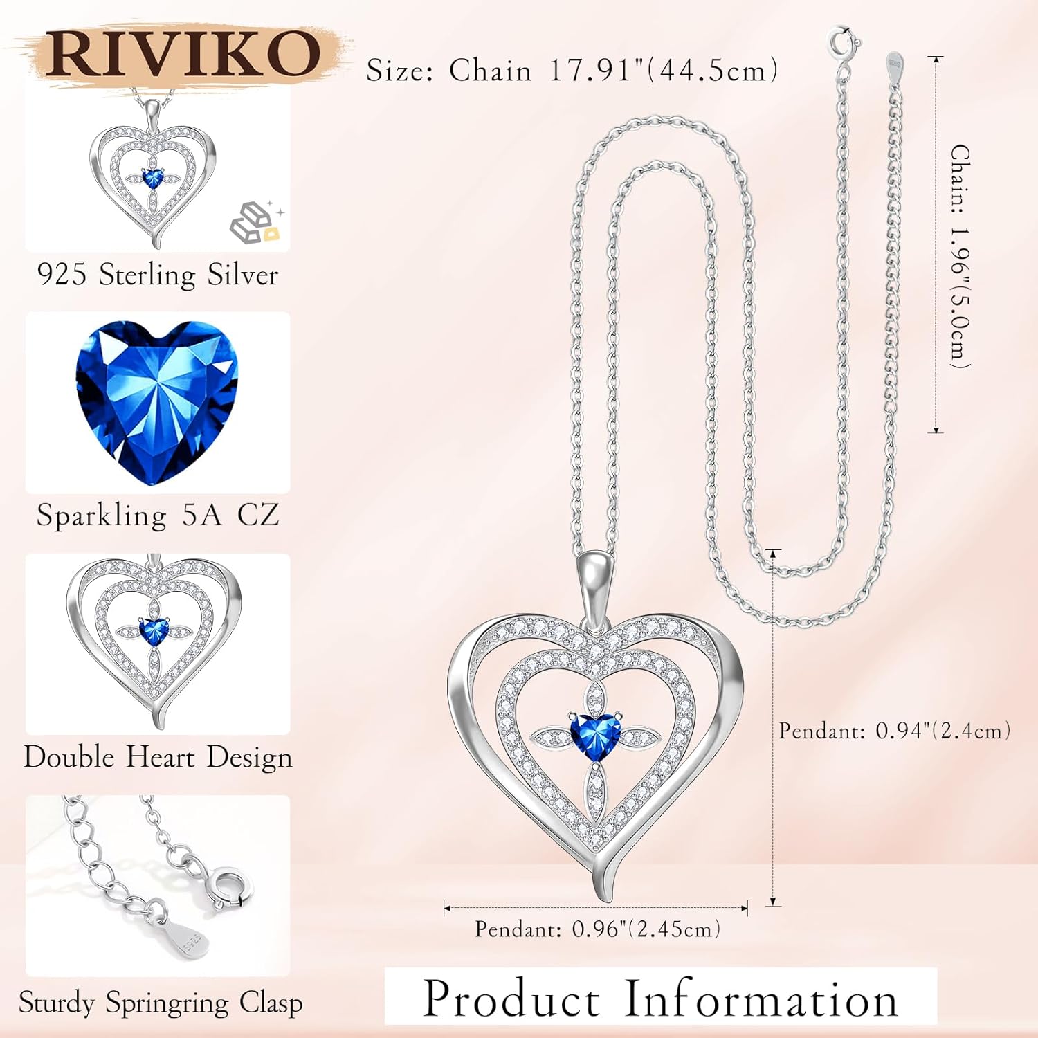 RIVIKO 925 Sterling Silver Cross Birthstone Necklace for Women,Love Heart Pendant Necklaces Trendy,Halloween Anniversary Christmas Jewelry Birthday Gifts for Women Wife Mother Friend