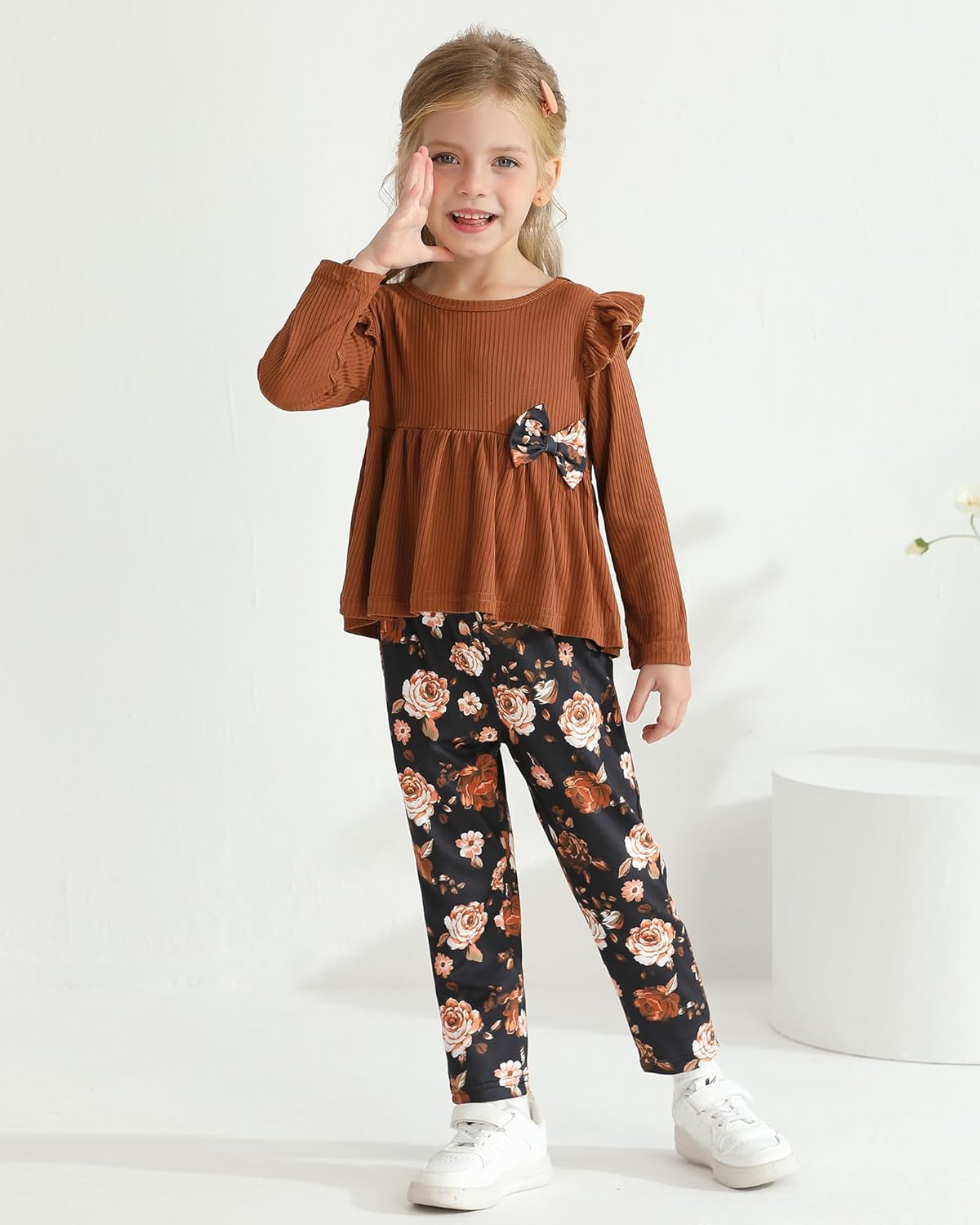 SANMIO Toddler Girl Clothes Long Sleeves Ruffle Top Floral Pants Cute Fall Winter Daily Casual Toddler Outfits