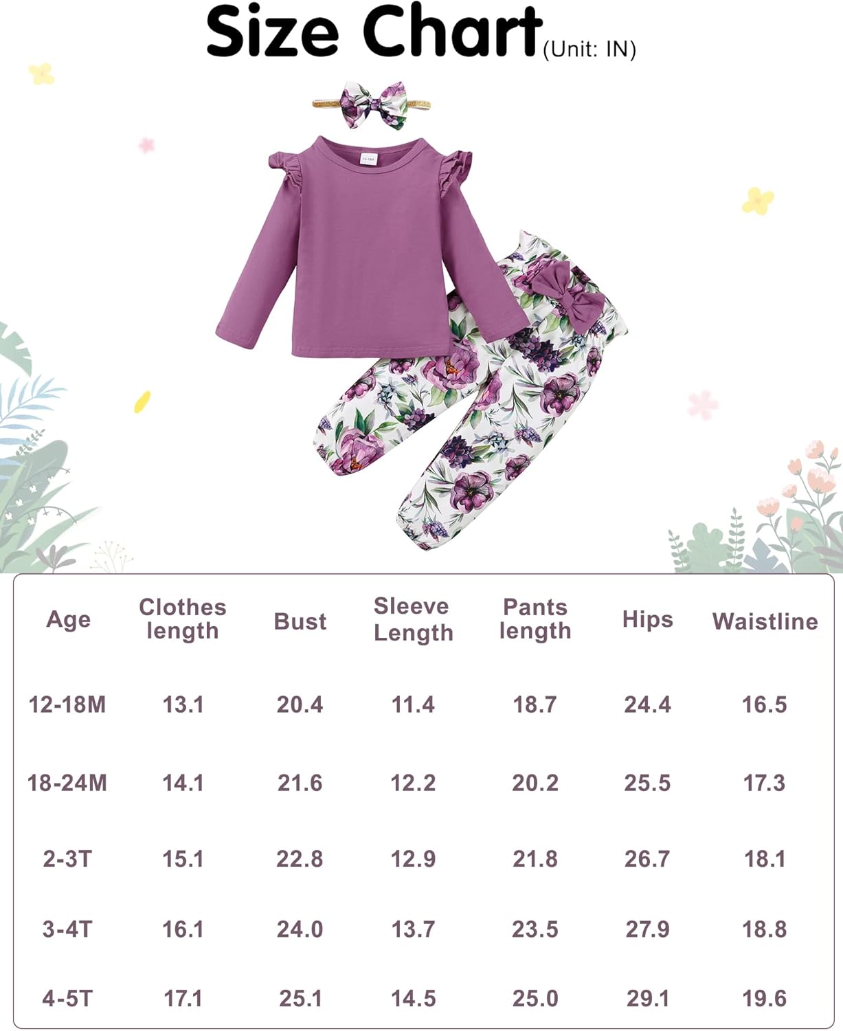 SANMIO Toddler Girl Clothes Outfits Cute Ruffle Sleeve Shirt Floral Pant+Headband 3Pcs Baby Girl Clothing Set 1-5T